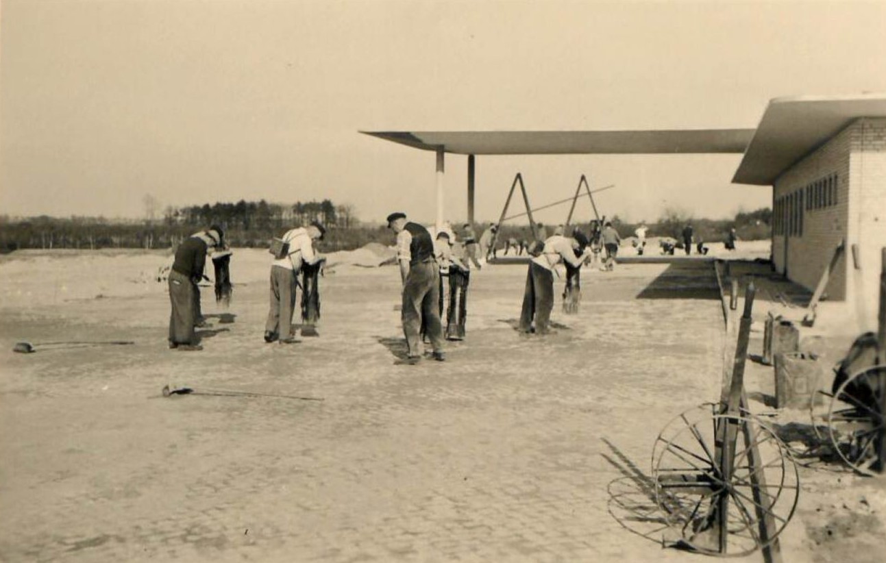Autobahnraststätte Garbsen Nordseite 1953 . Handarbeit -Natursteinpflaster .