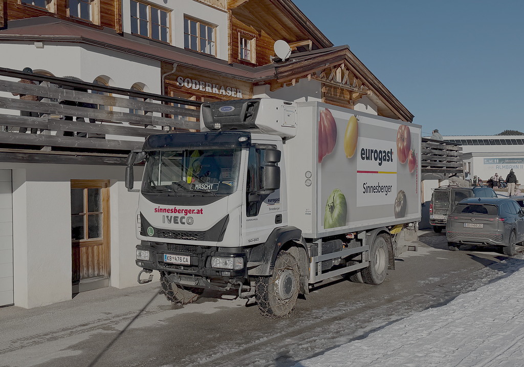 Sinnesberger bei der Anlieferung im Skigebiet auf der Loferer Alm - Dez. 2025