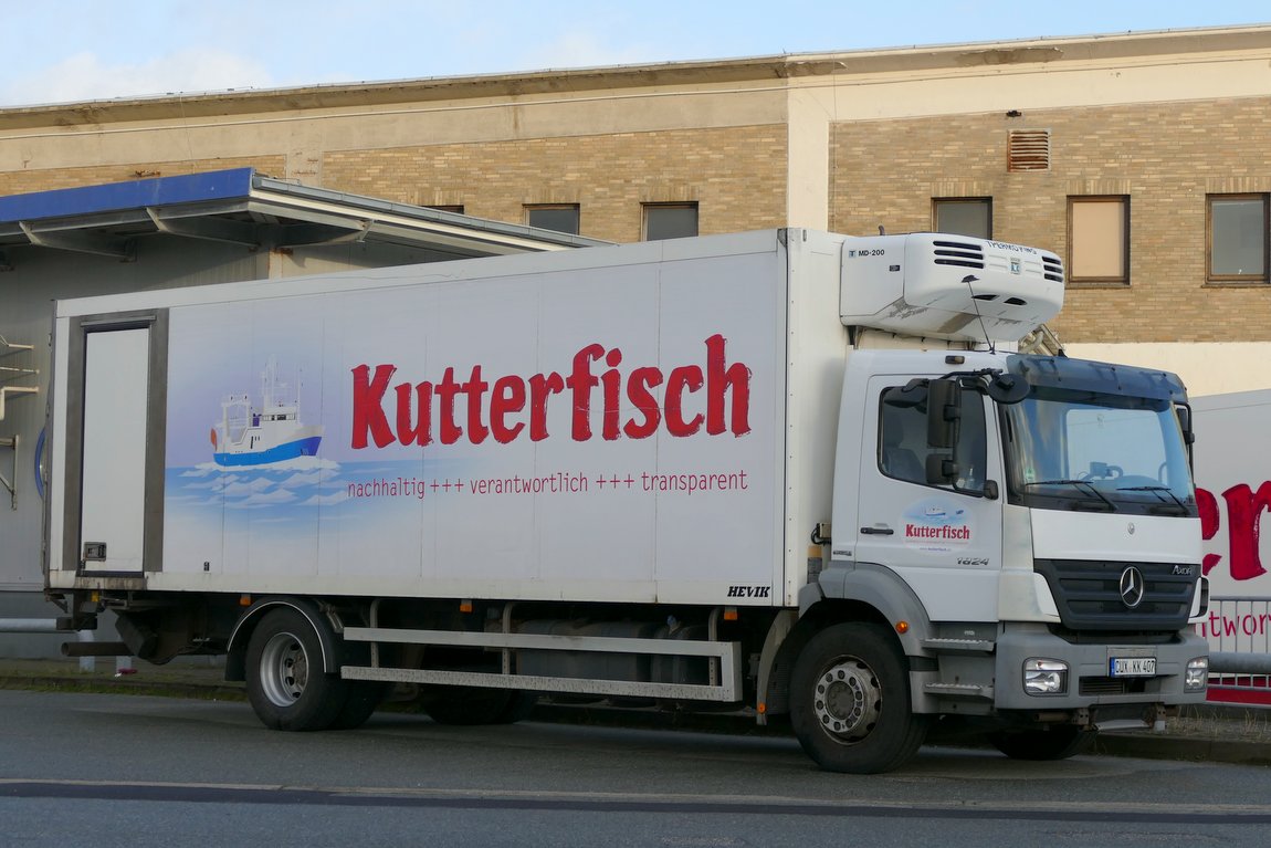 Ein kleiner Axor 1824 der zweiten Baureihe von "Kutterfisch" an der Zentrale in Cuxhaven