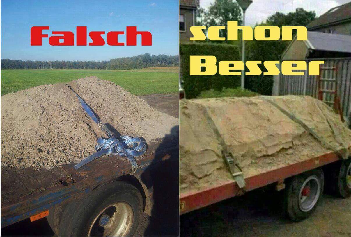 Wir haben in der Firma zur Zeit eine Verhandlung laufen weil einer angehalten wurde, "es KÖNNTE Ladung verloren werden", die Ladung bestand aus frisch Gewaschenen Kalksplitt 8/11, sprich Nass und nicht gerade eine kleine Körnung.