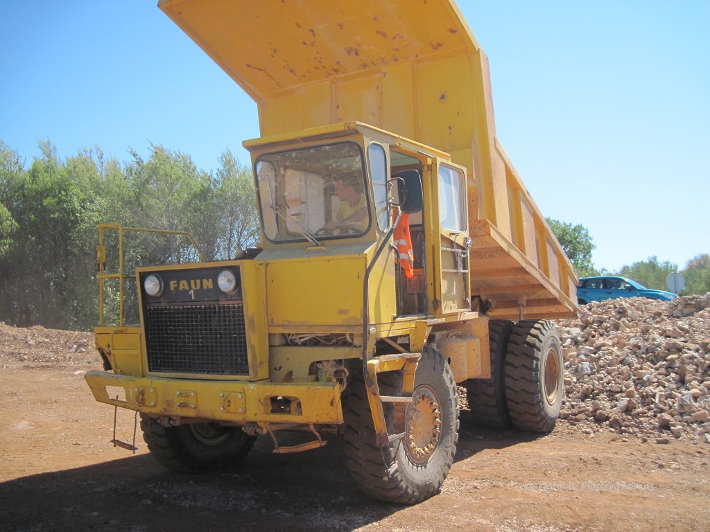 Hier jetzt einiges über die beide Faun K25 4x4 Muldenkipper , über welche ich bei meinem besuch an die Kiesgrube von die Firma Hofmair gestolpert bin , und verfolgend auf dem Thread O&K RH14 an die Arbeit in die Kiesgrube von die Firma Hofmair in welche die beide Muldenkipper an die Arbeit zu sehen sein . Bei mein zweites Besuch an die Kiesgrube sind auch die V12 Deutz Motoren von diesen beide Faun K25 gestartet , beiden liefen trotz Aussen-Temperatur von fast 0 Grad Celsius doch ziemlich flott an , es hat schon ein bisschen geraucht aus die Auspüffe , ich denke wenn diese V12 im Nähe von die Allianz-Arena in München gestartet würden , das der Schiedrichter sicherlich das Spiel unterbrochen hátte , weil beide Tore nicht mehr zu sehen sein würden ! Ursache wahrscheinlich eine kombination von Einspritzdüse, die nicht ganz so frisch mehr sein und Diesel Brennstof das schon ein Ewigkeit im Tank verbleibt . Als die Motoren sich dann aufwärmte , wurde auch das Rauchen besser , aber die Euro 6 Normierung wird wohl nicht zu erreichen sein mit diese Deutz V12 . Schönen Klang hat es aber gegeben ! Dann haben die Mulden sich mal angehoben , die Meiller Kipperanlage functioniert noch immer problemlos . Fahren war leider wegen einige Reifen , welche kein Luft mehr behalten , nicht möglich , auch die Kupplung-betätigung , welche Luft über Hydraulik arbeitet , functioniert nicht , was die Schaltung von den ZF gangwechsel nicht einfach macht . Alles zusammengefast sind die beide Faun Muldenkipper in recht bessere Verfassung als die jetzt aussehen , Jahre von nur stehen haben die Muldenkipper nicht viel Gutes gebracht , aber die einfache Technik sorgt dafür das die beide wieder ohne viel Aufwand am laufen zu machen sein .Das zweite Besuch wurde beendet mit die Vereinbarung das auch die beide Faun Muldenkipper einen neuen Eigentúmer bekommen würden und eine neue Zukunft in Holland eingehen würden
