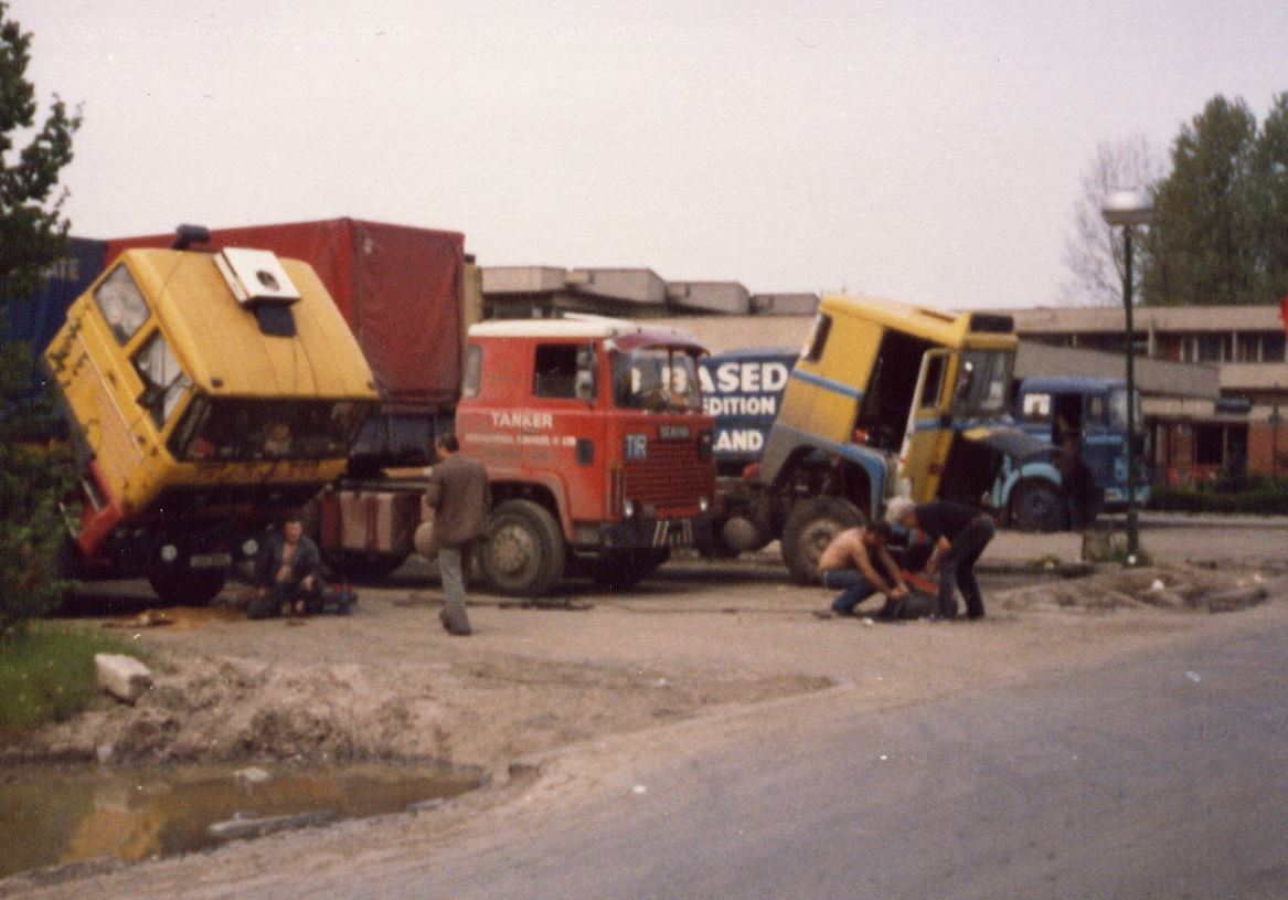 Vielen Dank, das Foto wo auf einem DAF u einem Scania geschraubt wird, eine Klasse Erinnerung an die "geilste" Adresse die ich als eigentlicher Kirchturmfahrer in der ersten Hälfte der 80er bekommen habe: "Hotel National Belgrad" da holst den Unternehmer XXX ab der steht da mit Motorschaden, bzw bis dorthin schleppt er selber ab, wir haben den Motor repariert jetzt ist er wieder hin. (Repariert waren Kolben und Büchsen aber dann hats die Kurbelwelle abgerissen) Augen