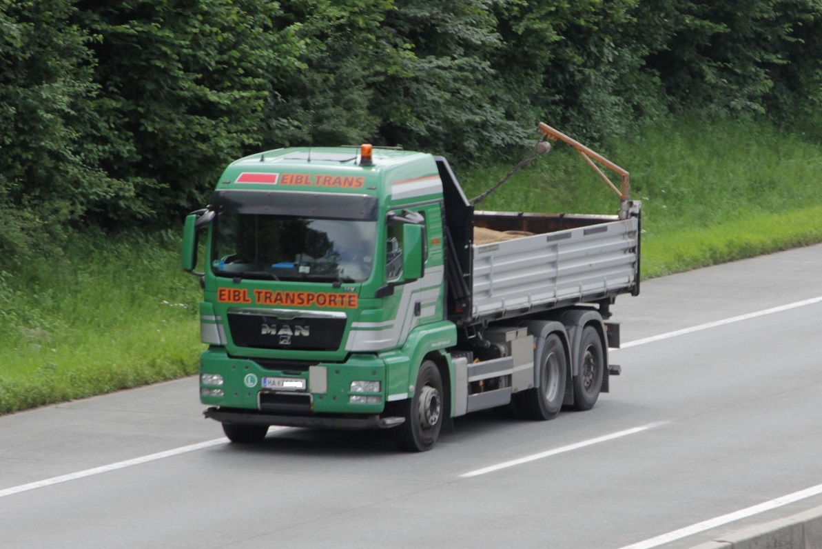Von Eibl-Transporte bei Hallein wird dieser TGS im Baustellenverkehr aktuell noch eingesetzt - scheinbar auch häufig für den Asphalt-Transport: