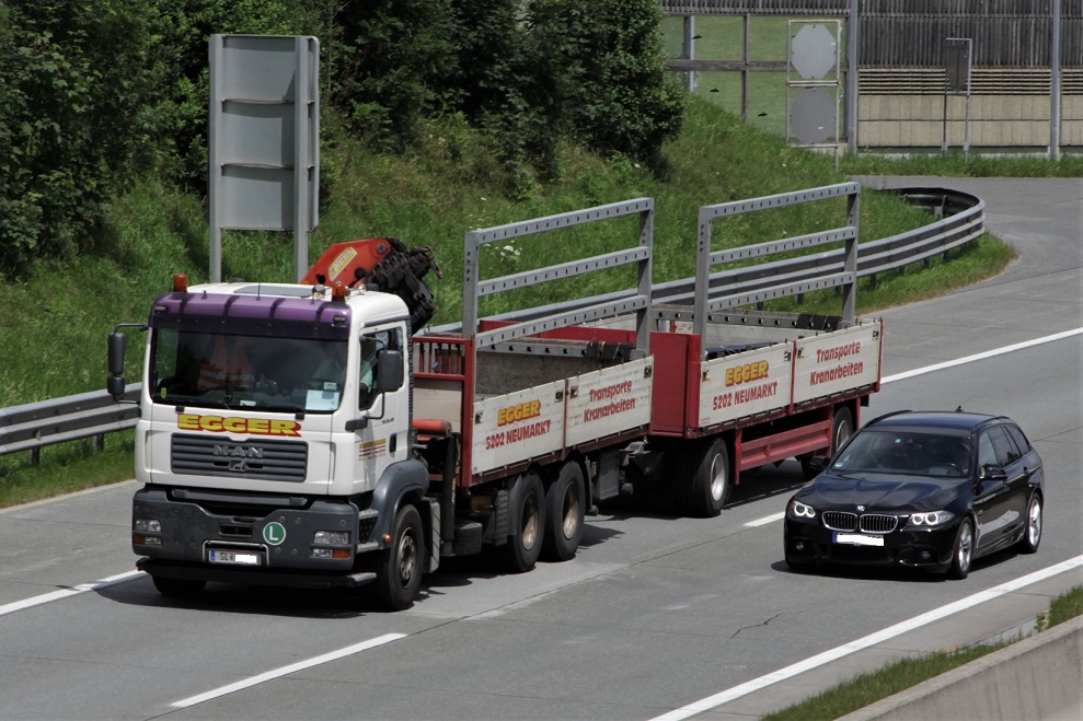 Auch im gepflegten Fuhrpark von Egger-Transporte in Neumarkt a.W. finden sich noch gut erhaltene etwas ältere Fahrzeuge, so wie dieser TGA-Hängerzug hier mit Aufnahme aus 2020: