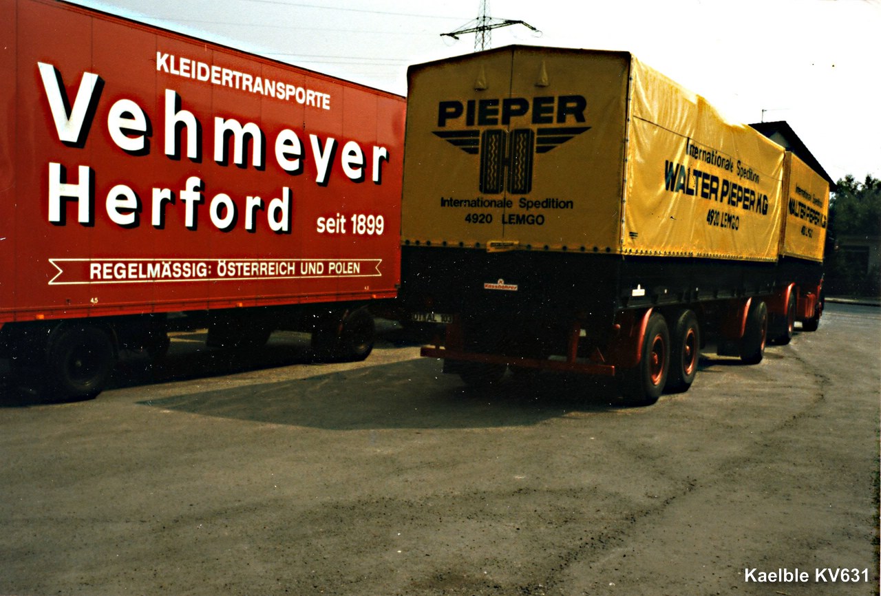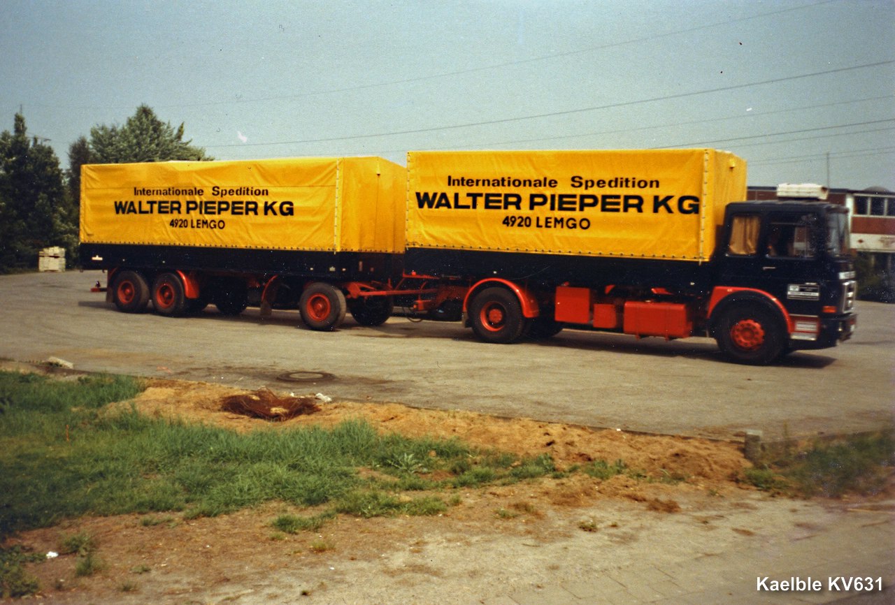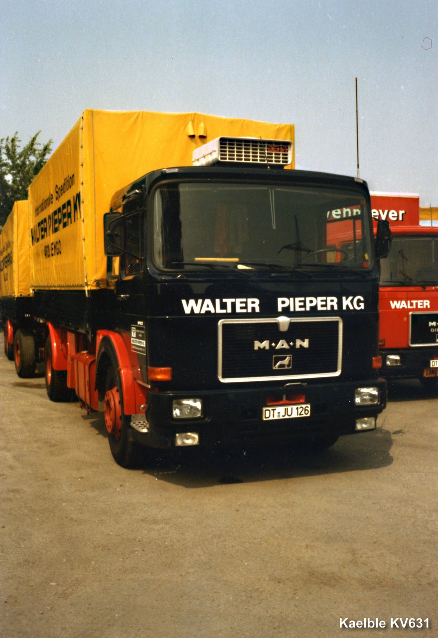 der Pieper erinnert mich ein wenig an die Spedition Kremer in Alsdorf, die hatten seinerzeit auch schwarz mit rotem Chassis und gelber Plane, und auch zumindest teilweise MAN.