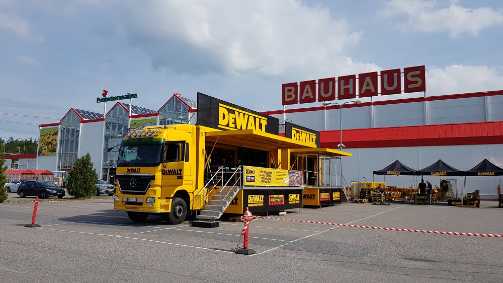 Von mir ein Mercedes Actros als Promotionfahrzeug für DeWalt Werkzeuge. Das Zugfahrzeug hatte Schwedische Kennzeichen und der Anhänger aus UK.