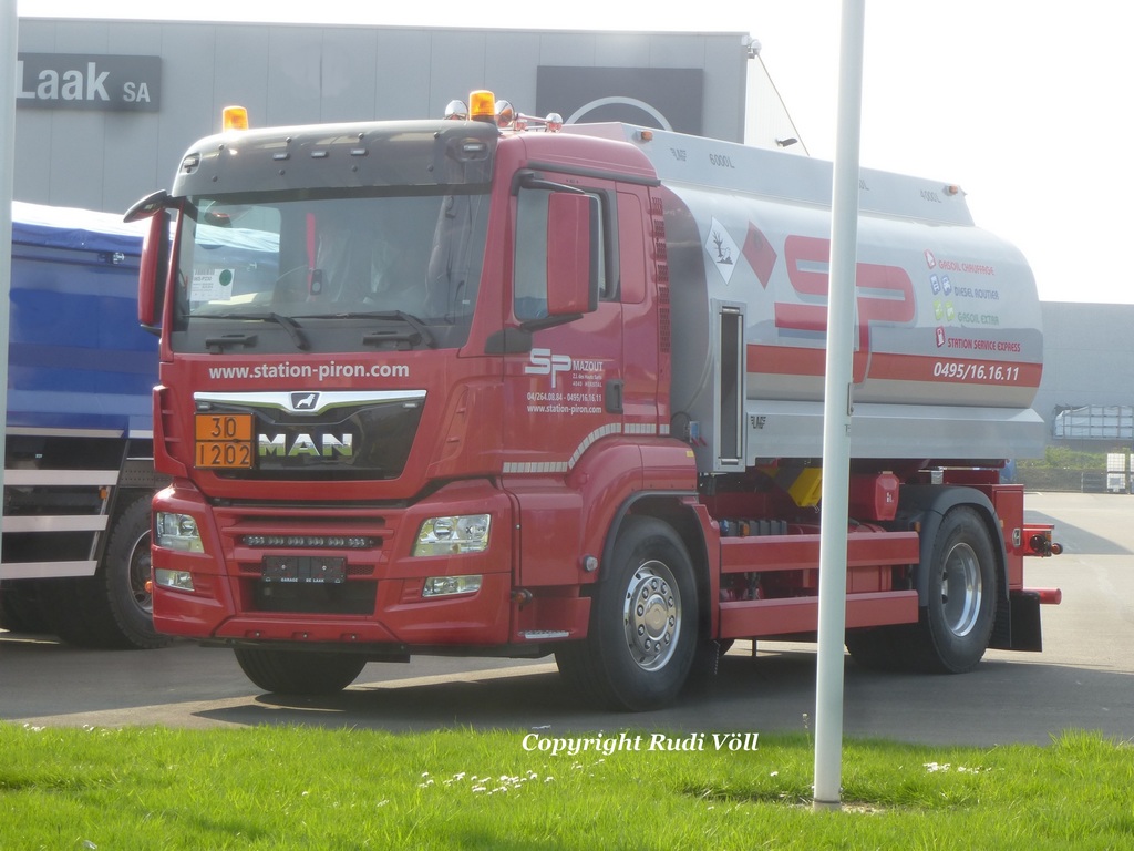 diesen nagelneuen und auslieferbereiten TGS18??? M Tankwagen von Station-Piron konnte ich im März 2019 im Belgischen Les Plenesses bei Vervierrs beim örtlichen MAN-Händler fotografieren.