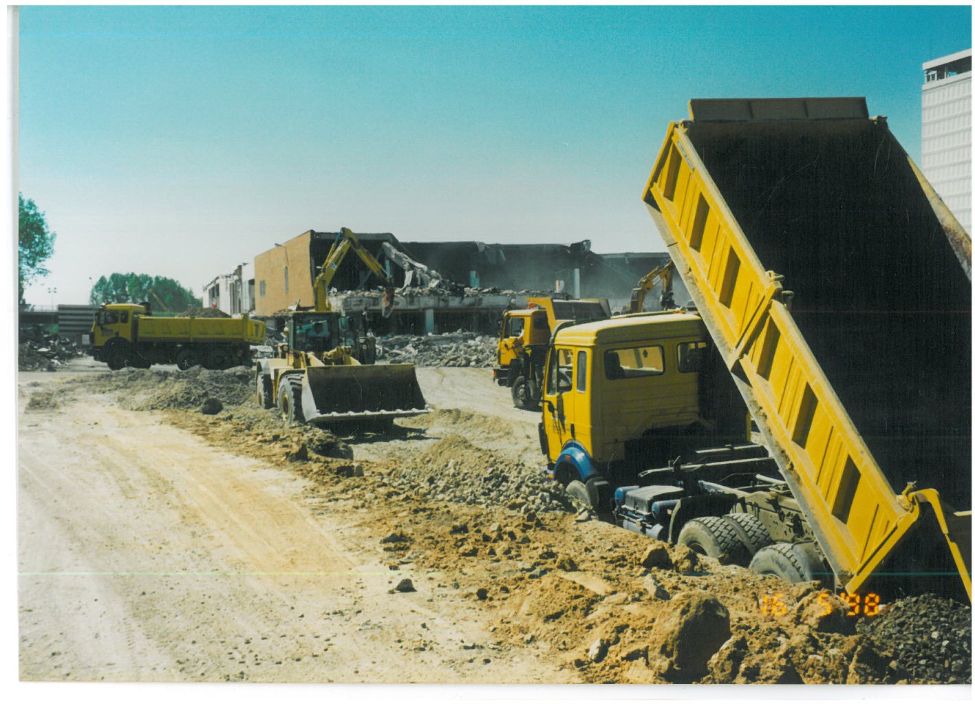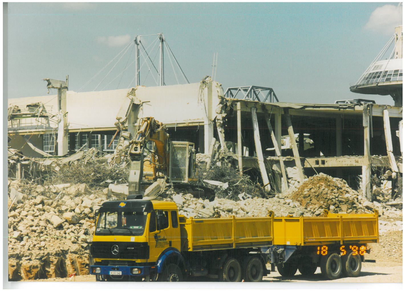 Hier noch der Döpke beim Abbruch der alten Gärtnerei Prittschock oder so ähnlich, 1982 in Buchholz. Im Hintergrund ist das Gebäude der Gerhart-Hauptmann-Schule.