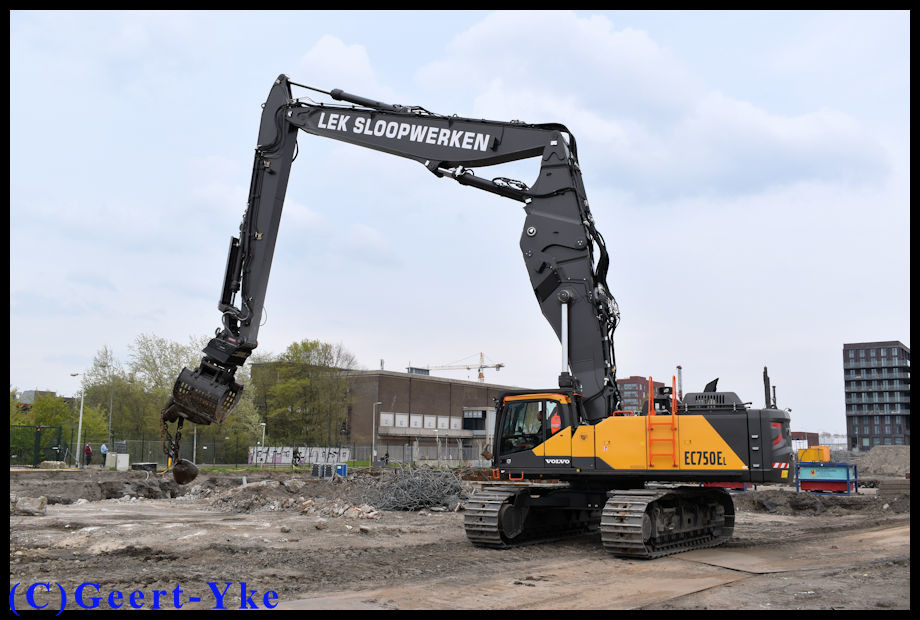Volvo EC 750E Triple auf sein erste Projekt. Im Einsatz mit Zijtveld 4000D Abbruchgreiffer und OilQuick OQ Hydraulische Schnellwechsel. Auch arbeiten mit Abrissbirne geht
