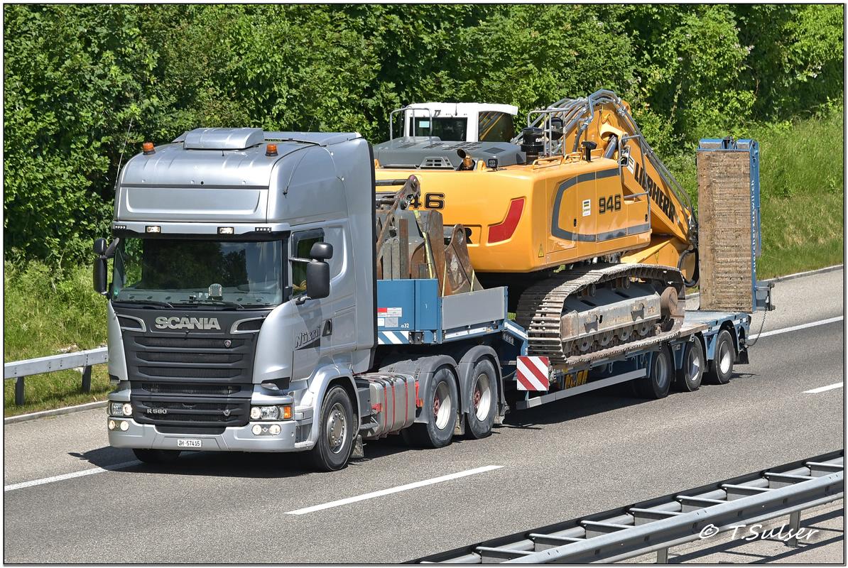Und der Scania 113 darf unserem 5-Achs-Kran Humus zum Greifern zu führen.