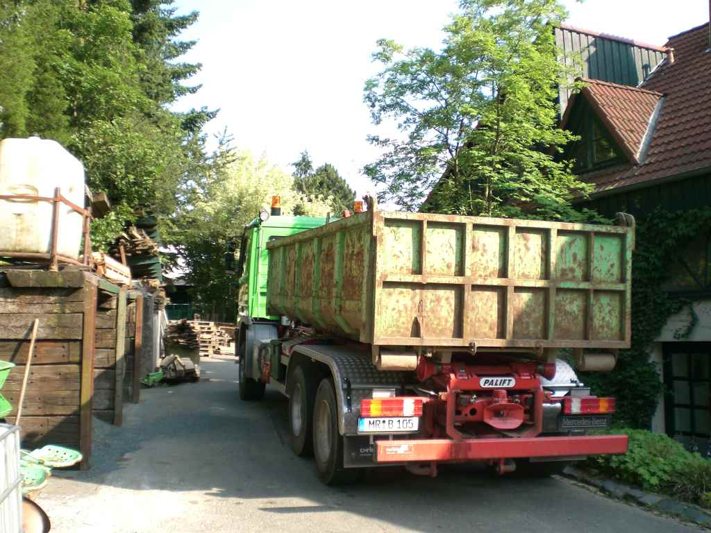 Es handelt sich dabei um einen Actros 2646 mit Palift Abroller Und Palfinger PK 20002 Kran! ( der kran ist leider auf den Bildern noch nicht zu sehen der war da noch nicht Lieferbar/ montiert und mit Kran ist der Lkw mir leider noch nicht vor die Kamera gekommen! Wird aber nachgeholt) Der Lkw ersetzt einen SK 2635. ( zu sehen im Abroller Fred auf seite cool Lange rede kurzer sinn nun die Bilder!