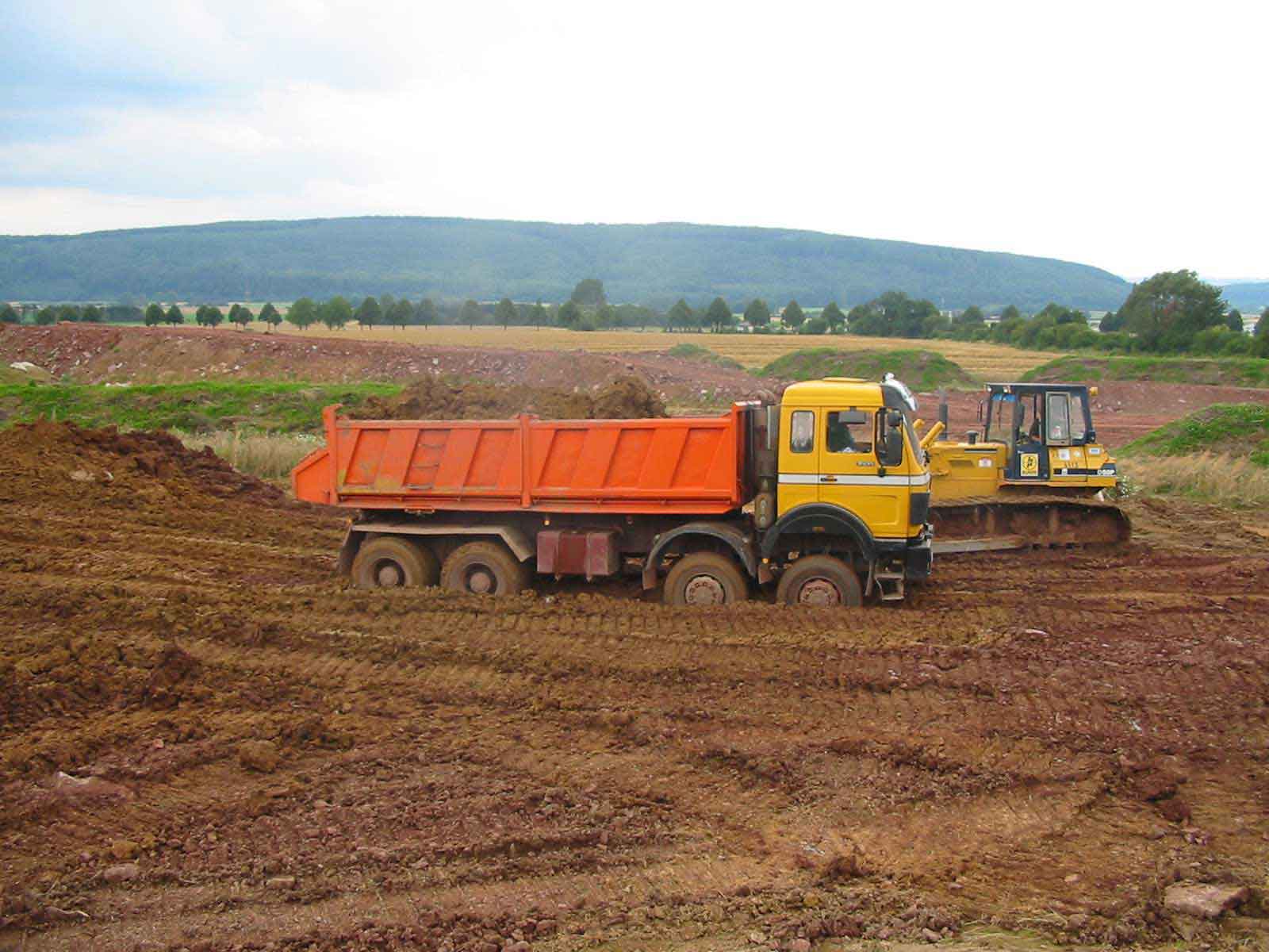 Mercedes 3538 SK nach heftigem Regenschauern auf Bodendeponie.