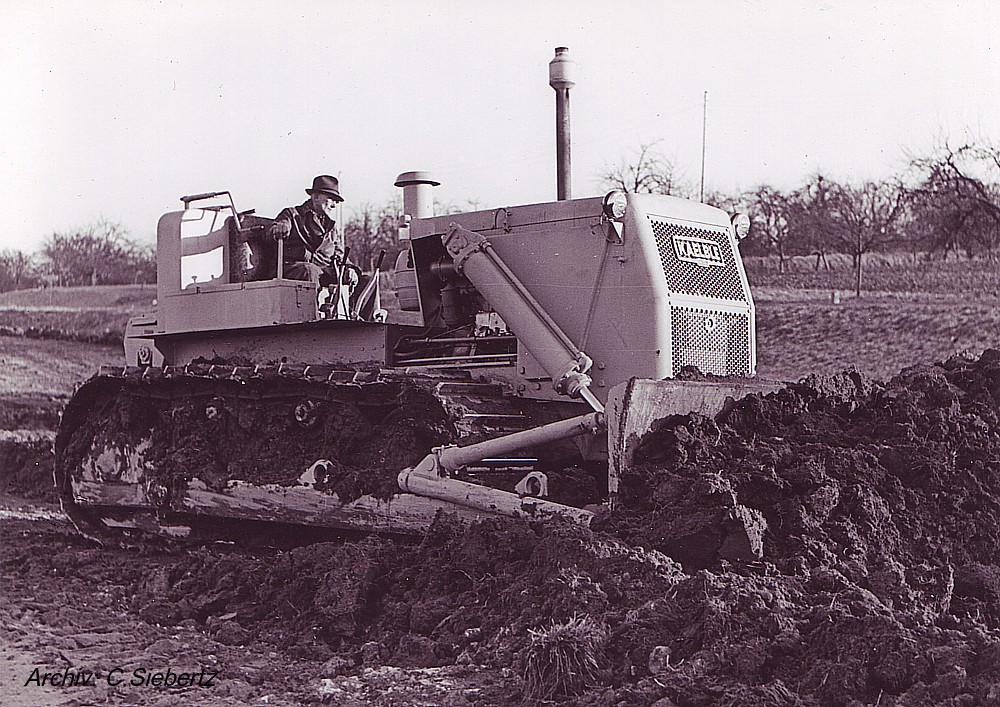 Die Bilder zeigen ein "Tiefenlockerungsgerät". Damit sollten stark verdichtete Ackerböden oder Böden die noch nicht urbar gemacht waren aufgelockert werden. Die Zinken an dem Anbaugerät wurden hierzu ca. 1,2o m in den zu bearbeitenden Boden eingebracht. Durch Vibration der Zinken wurde dann der Boden aufgelockert. Dies ersetzte den Einsatz eines Tiefpfluges. Der Antriebsmotor für die Hydraulik des Gerätes verbirgt sich in dem Kasten, der vom Planierschild aufgenommen wurde. Wenn meine Unterlagen richtig sind, war der Motor ein luftgekühlter Kaelble Motor. Es ist sicher wenig bekannt, dass Kaelble auch eine ganze Reihe von luftgekühlten Motoren bis hin zum V - 8 Zylinder im Angebot hatte. Ein Schnittmodell eines solchen 8 Zylinders befindet sich im Kaelble Museum in Backnang.