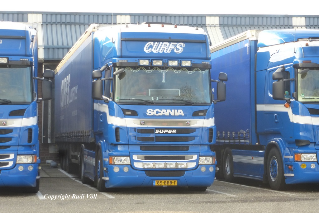 Von mir praktisch die Farbumkehrung mit diesen drei Lastern von Curfs, aufgenommen im Februar 2017 im Niederländischen Gronsveld.
