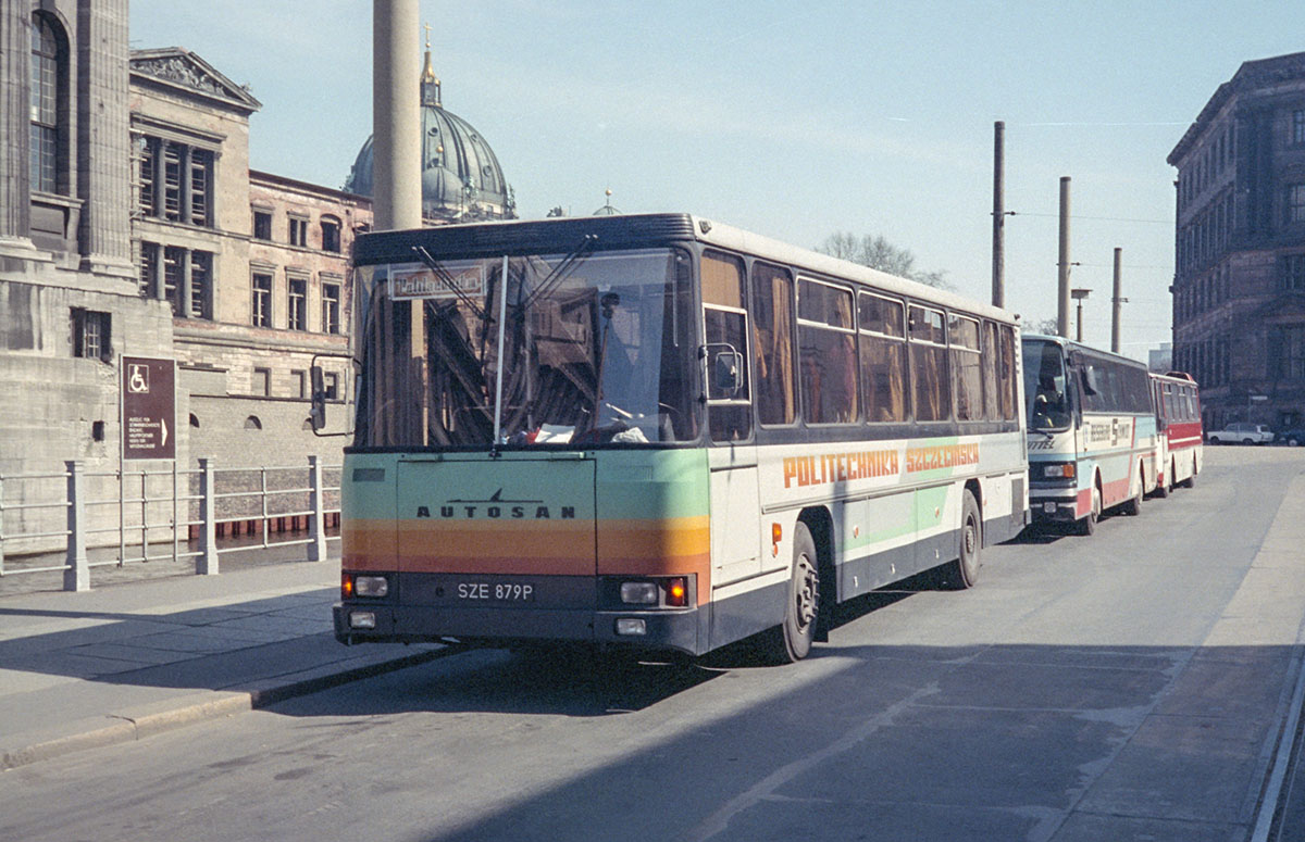 ein polnischer Autosan aus Stettin 1988 am Kupfergraben vor dem Pergamonmuseum.