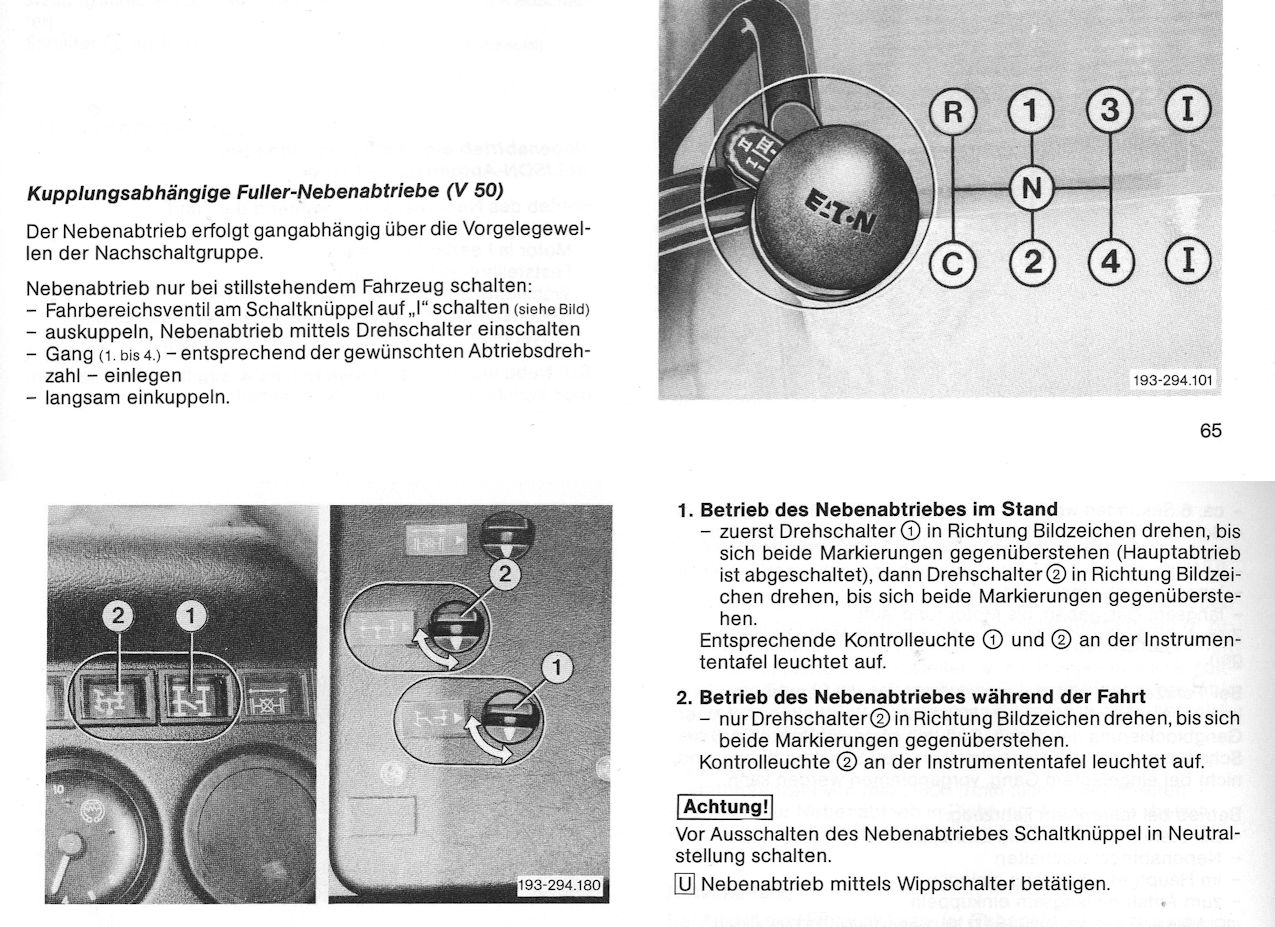 ABER, du musst doch zum Betreiben der Hydraulik nicht nur die Pumpe einschalten sondern auch einen Gang einlegen!? Da solltest du jemanden finden der sich da richtig auskennt wie das mechanisch funktioniert daß du gleichzeitig fahren kannst! Da würde ich Werkstätten abklappern die Fzge betreut haben die Fuller verbaut hatten, also z.B. nicht nur MAN sondern auch Iveco, Steyr wird ja fur dich weniger in Betracht kommen!