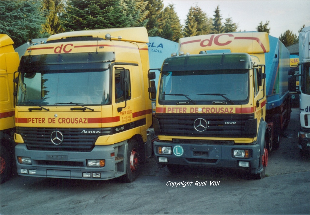 Peter de Crousaz ist mir natürlich ein Begriff, schade, daß es diese Spedition nicht mehr gibt. Deren Laster haben mir immer gut gefallen, damals sah man ja noch nicht so oft Innenlader. Kann mich auch noch an Glastieflader erinnern, also Sattelzüge, wo die Glasgestelle wohl per Kran auf die Tieflader verladen wurden. Davon habe ich aber so gut wie keine Fotos, war ja alltäglich damals