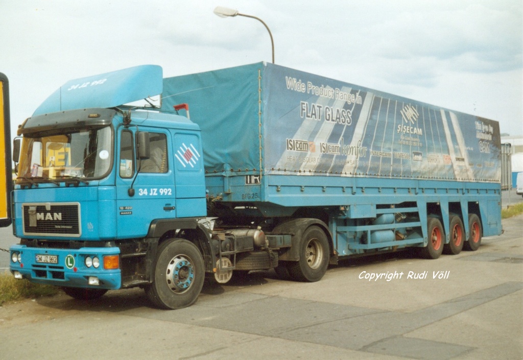 gepostet, hier gibts nen im März 1997, als ich das Bild auf dem Parkplatz bei den Saint-Gobain-Glaswerken in Stolberg gemacht habe, noch flammneuen Mercedes ActrosL1840LS Innenladersattel. Der hatte noch nicht mal das "Truck of the Year 1997" Logo auf dem Grill. Dazu dann noch ein Päärchen aus Juli 2003, ebenfalls ein früher Actros und ein SK 1838LS, beide abgemeldet und auf dem Firmengelände aufgenommen. Bin nicht mehr ganz sicher, aber es wird wohl die Zeit gewesen wein, als de Crousaz den Betrieb eingestellt hatte.
