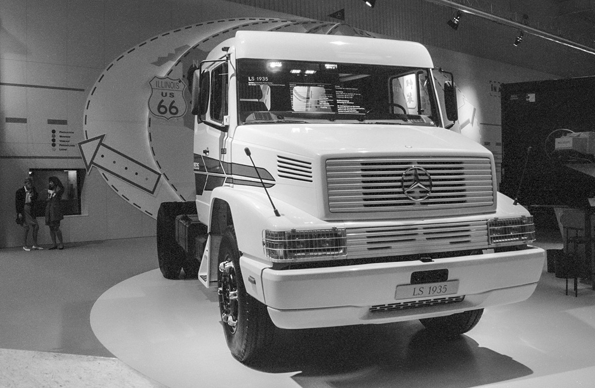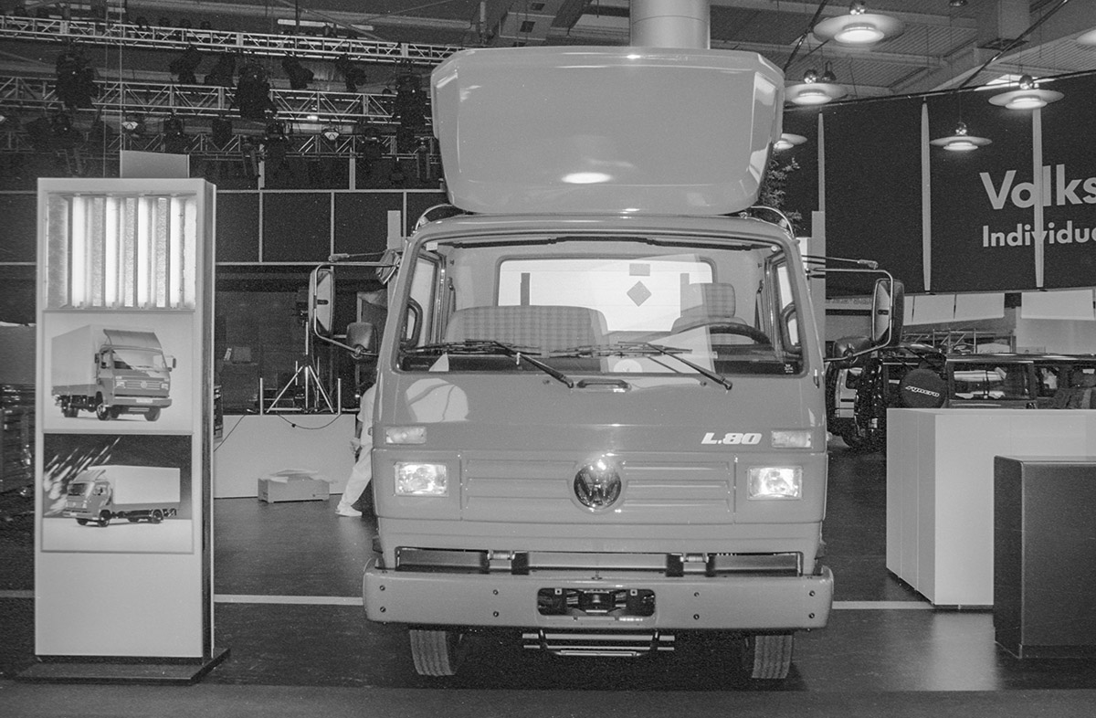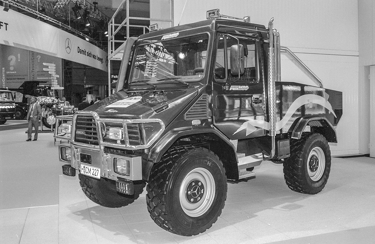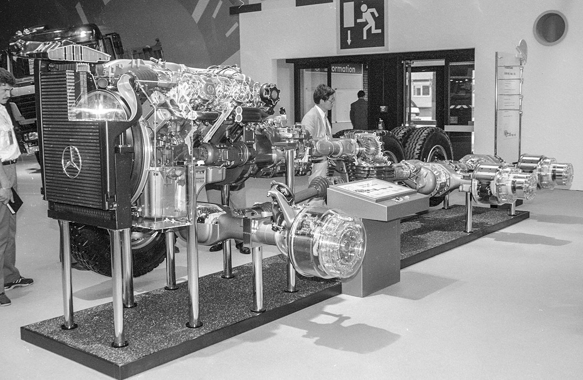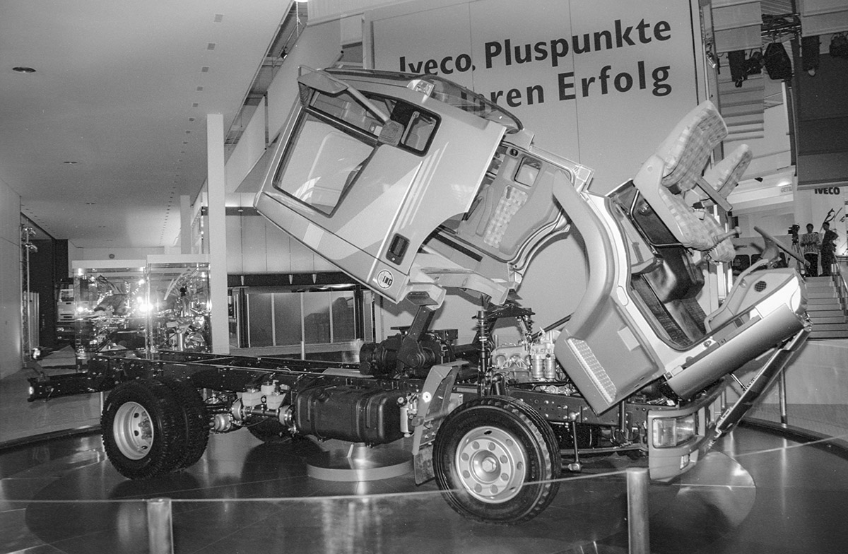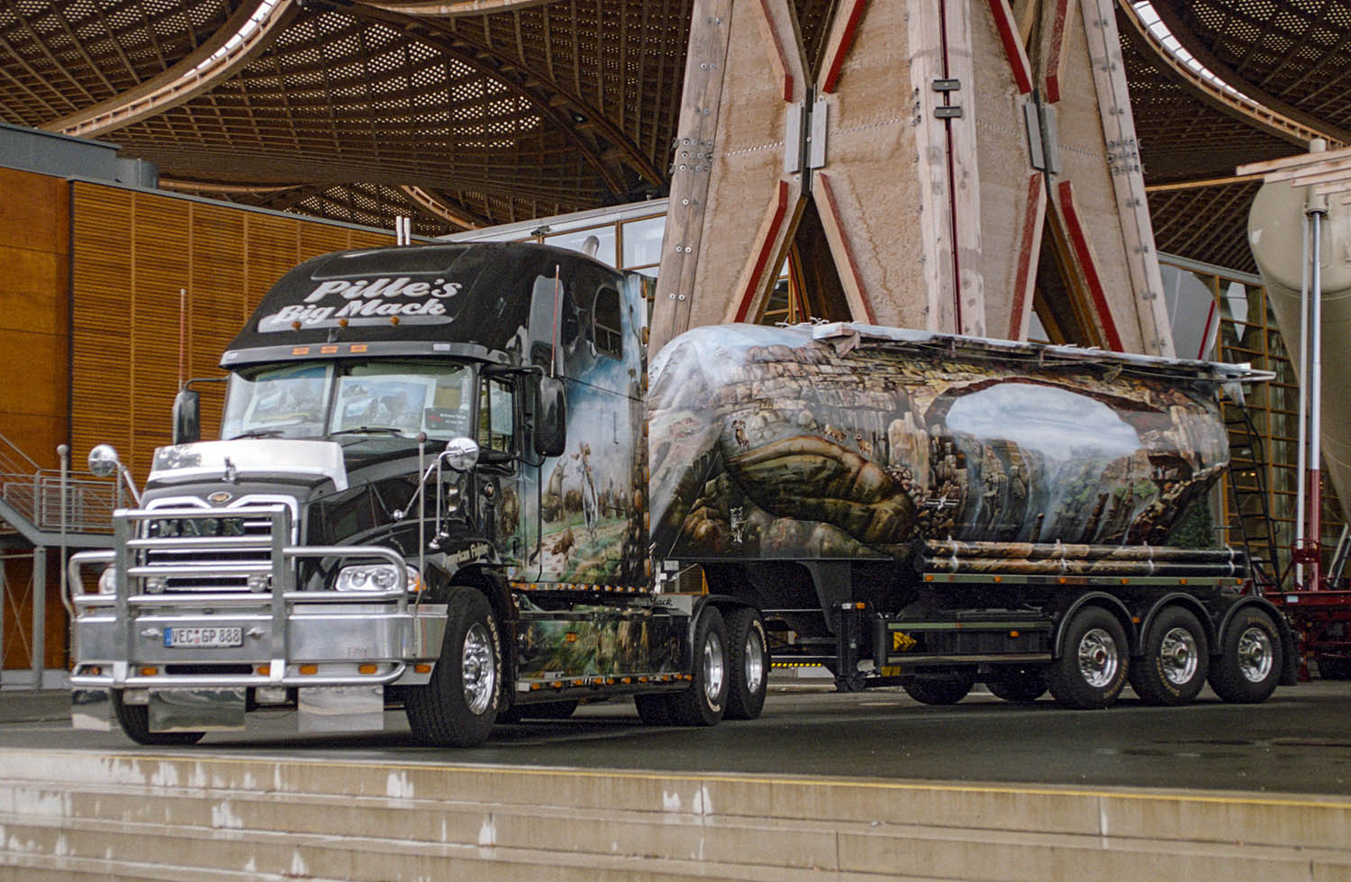 Aber ich vermute mal, dass das nur ein Gimmick für die Messe war, denn so ein Lkw hat ja auch noch einen Aufbau, und der würde doch im Wege sein.
