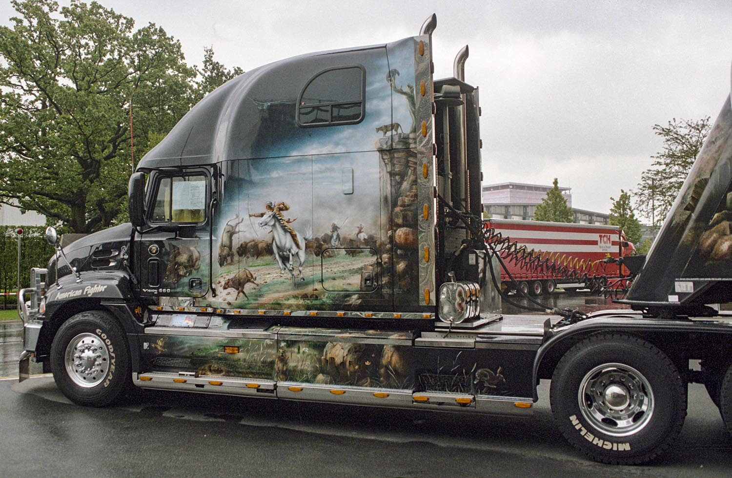 Der F90 Hochdach vom Freigelände würde ev zur Hannover Messe 1994 passen, auf der IAA 1994 wurde der MAN F2000 und der SK94 präsentiert. War die erste IAA die ich besucht habe.... da waren meiner Meinung nur noch die Spezialfahrzeuge aus der F90 Baureihe zu sehen.