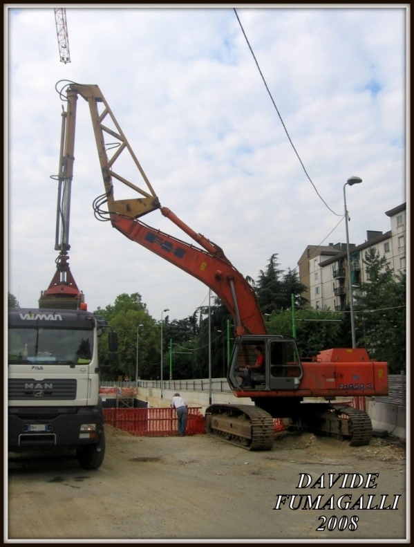 FH450.3 Fa. Lucchini & Artoni bei der Arbeit in der Baugrube für eine Station der Linie 5 der Mailänder U-Bahn |