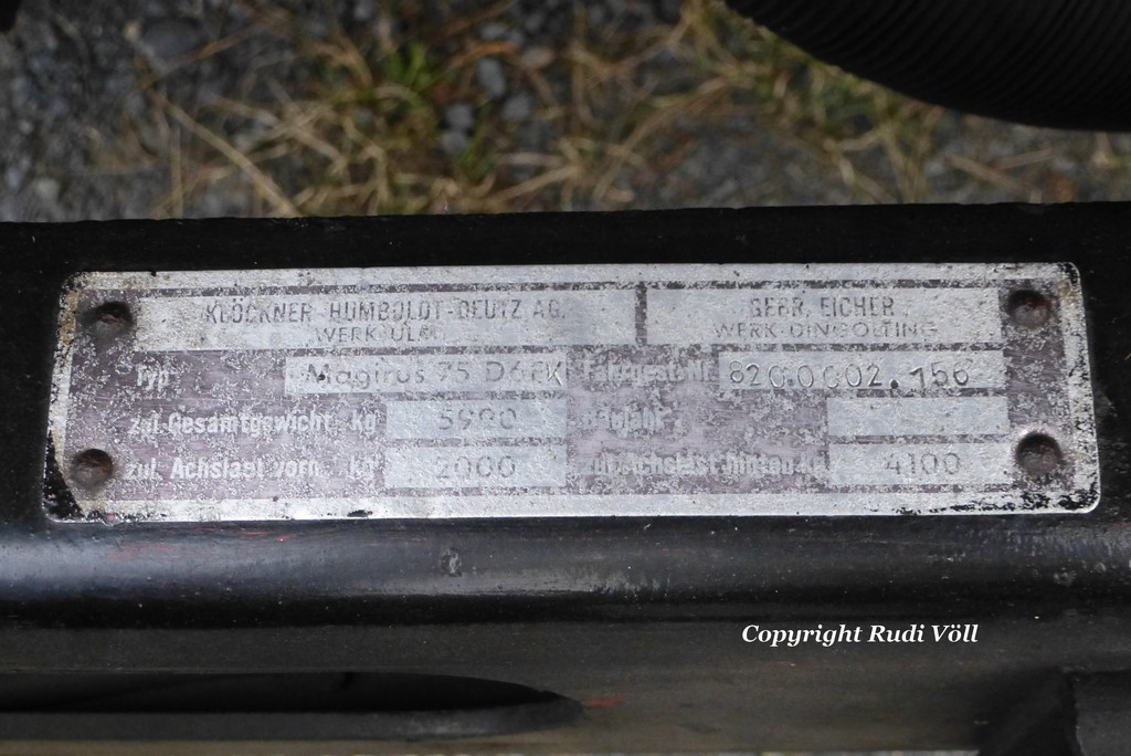 Sehr interessant finde ich das Typenschild, auf dem sowohl "Klöckner-Humboldt-Deutz AG Werk Ulm" als auch "Gebr. Eicher Werk Dingolfing" vermerkt sind.
