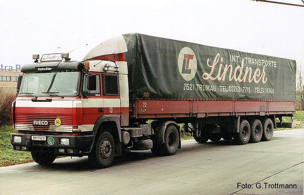 Damals konnte ich nur mit einem 111er Scania dienen, dank Günter gibt es jetzt noch Wagen Nr. 13 in Form eines Iveco TurboStar 190-33, den er damals am Rasthof Limburg an der A3 vor die Linse bekam. Muss ja dann nach deiner Beschreibung nach 1992 gewesen sein, da dann die ersten TurboStar im Fuhrpark auftauchten.