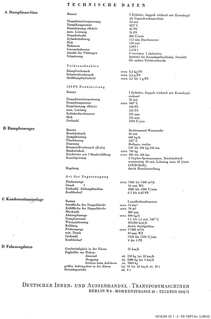 (wird getestet) Dampfzugmaschine Sachsenberg DW-60, Bj. 1944, Gesamtgewicht mit zwei Anhänger 15000 kg, Geschwindigkeit bis 35 km/h, Dampfmaschine 65 PS, 450 kg Kraftstoff und 400 Liter Wasser