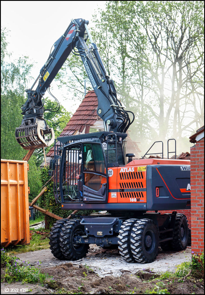 Mobilbagger Atlas 160W der Firma Würdemann bei Abbrucharbeiten.