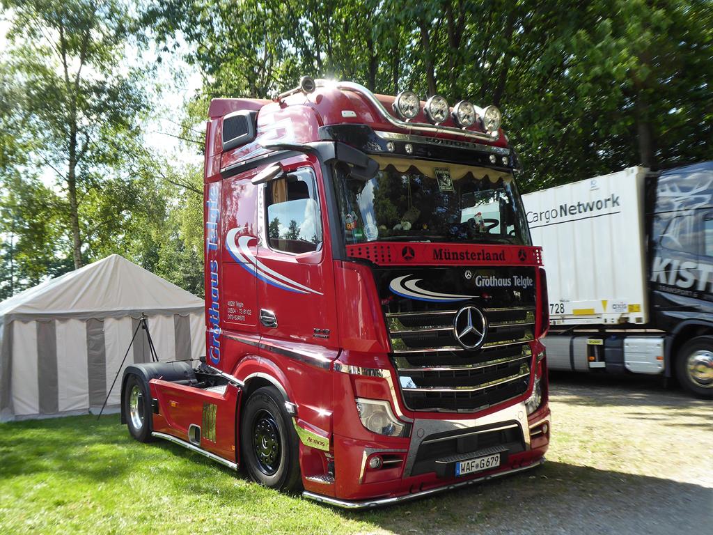 So ganz falsch ist der von Maximilian gezeigte Actros hier aber nicht! Handelt es sich beim Fahrzeug um einen Actros ‚Prime‘, eine Art Sondermodell des Actros, die Mercedes angeboten hat oder hatte (so genau weiß ich das im Moment nicht), wo Kunden schon zur Bauzeit des Actros 5 noch einen ziemlich vorkonfigurierten Actros 4 bekommen haben. Ausgestattet mit dem 510PS OM471 Motor und der BigSpace Kabine und innen das bekannte Classic Cockpit vom Actros 4 mit paar Details vom Actros 5 (Startknopf, elektrische Feststellbremse). Ein Fahrzeug für Kunden, die weder Displays noch Kameras vom Actros 5 wollten und zeitlich ein eher günstigen Actros (neben dem Actros F) suchten oder suchen. Die Fahrzeuge sieht man bei recht vielen Firmen in Deutschland und Europa fahren und sind quasi neuer, als es das ‚alte‘ MP4 Außenkleid vermuten lässt.