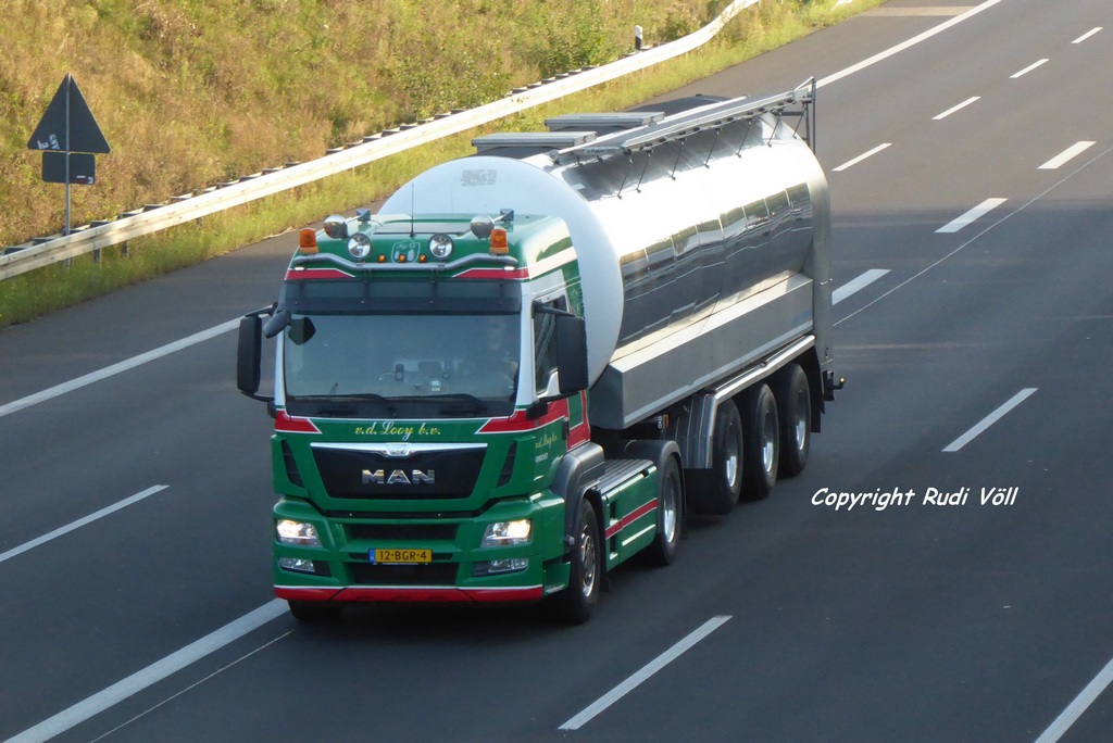 Auch waren zum Zeitpunkt der Aufnahme die ersten beiden Achsen angehoben, der Tank wohl leer. Vermutlich hatte der Volvo gerade eine Ladung Milch an der Molkerei im Belgischen Walhorn, kurz hinter der Grenze, angeliefert.