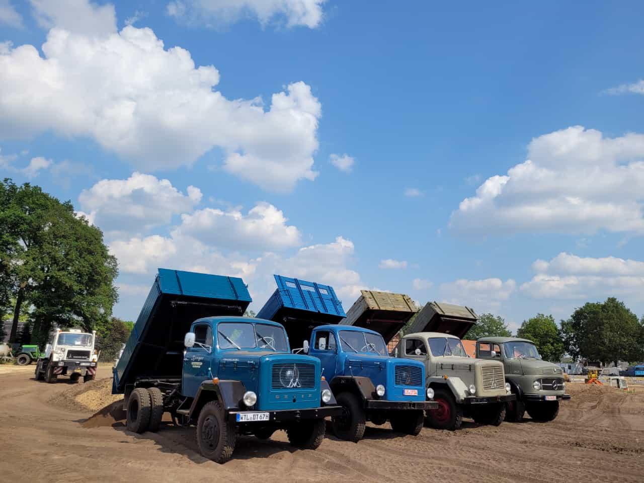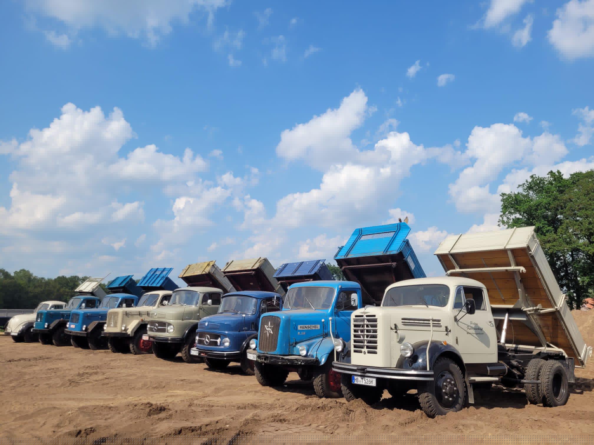 Einige hundert historische Nutzfahrzeuge, vom Sattelzug über Hängerzüge, Möbelwagen, Kippfahrzeuge, Seilbagger , Radlader, Raupen und Kettenfahrzeuge sowie viele andere seltene Fahrzeuge, waren bei uns für ein langes Wochenende zu Gast.