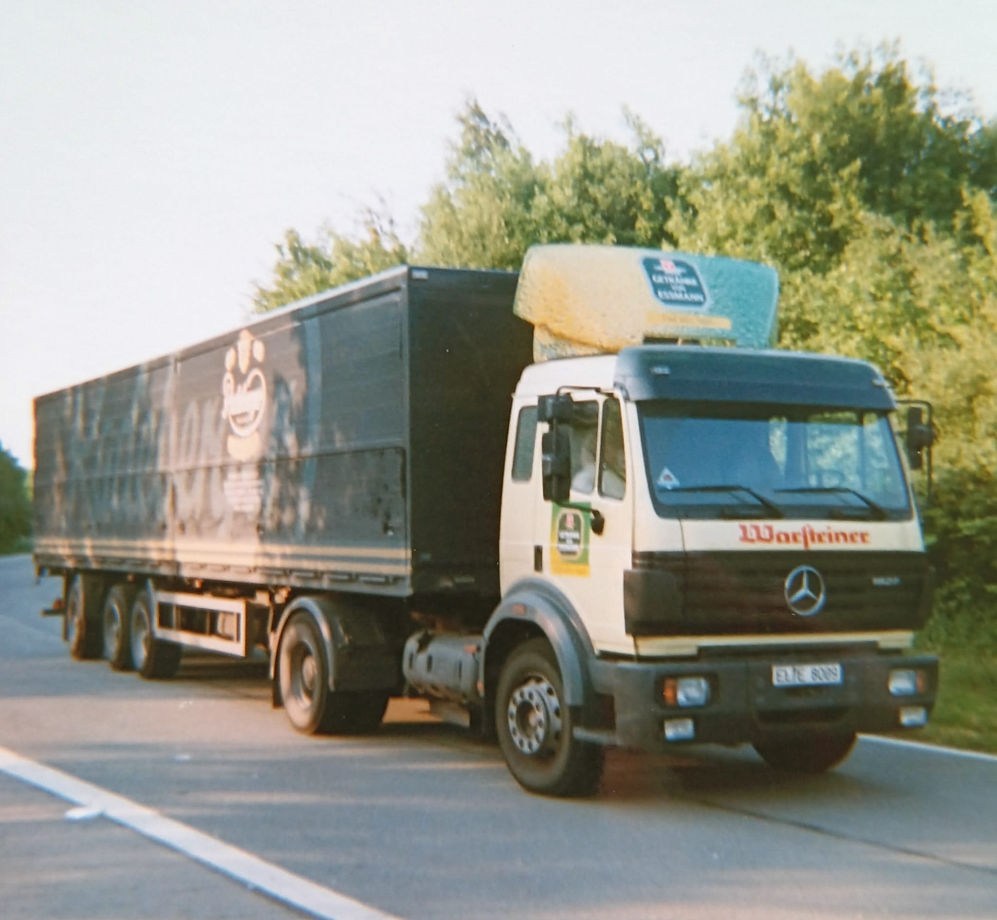 Wir hatten in Lingen seinerzeit auch einen Veltins Deichsel Hängerzug am Laufen (der wurde, glaube ich, von einem anderen Getränkehändler übernommen). Es wäre ein MB SK 2538 mit festem Getränkeaufbau.