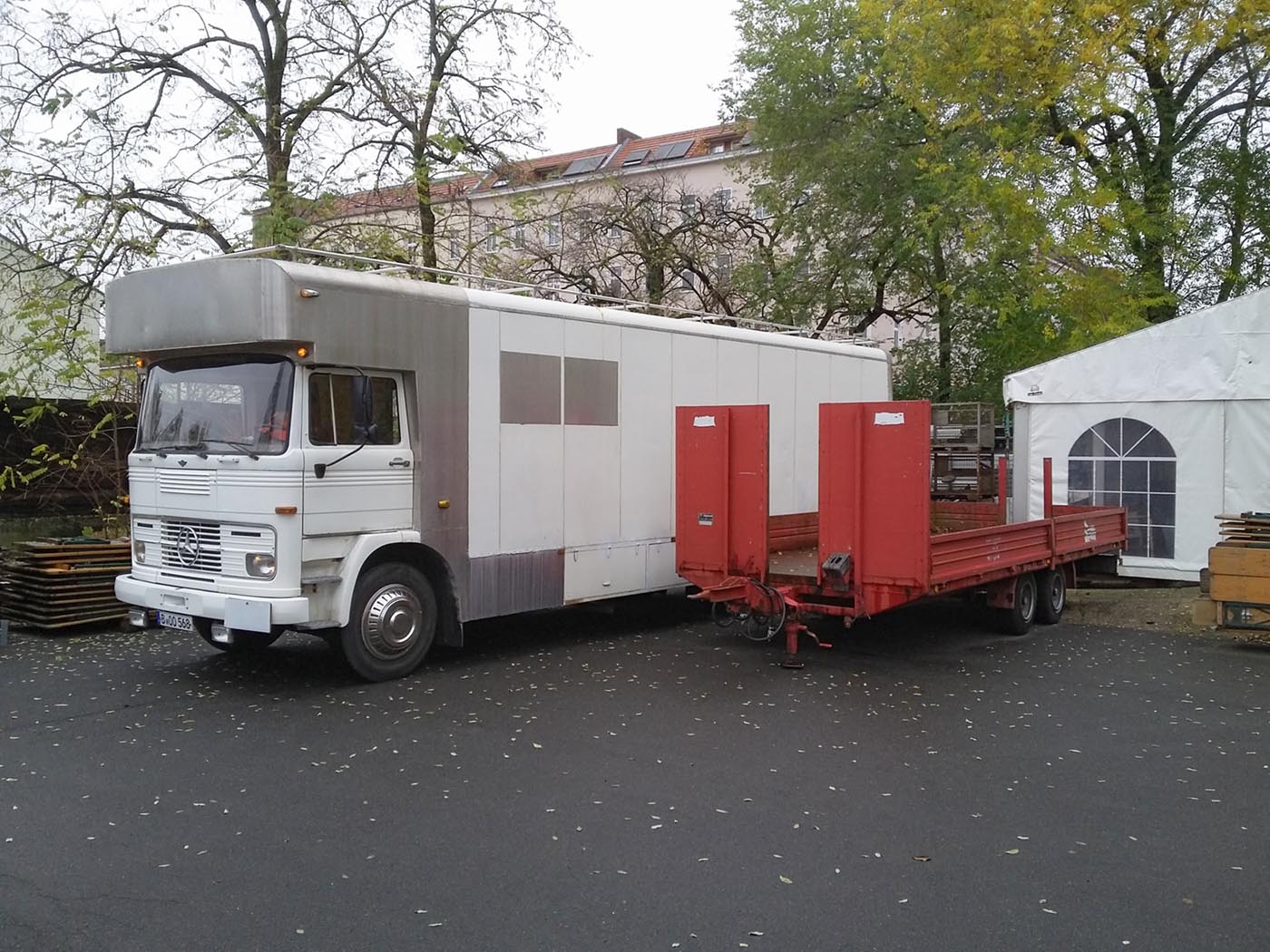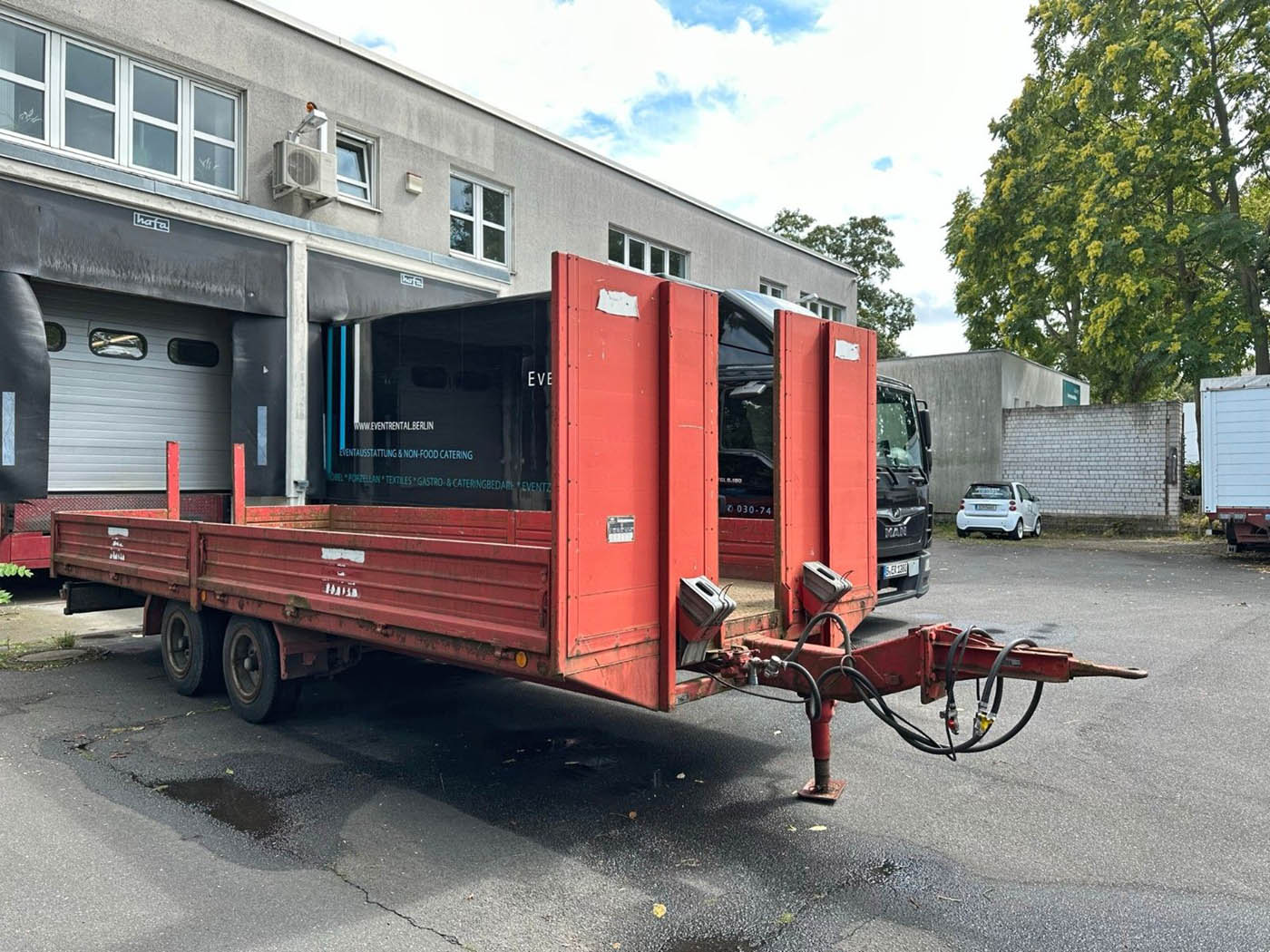 Jetzt habe ich den passenden Anhänger gefunden und heute gekauft: ein Blomenröhr Tieflader von einem Zeltverleiher, im April wird er auch schon Oldtimer.