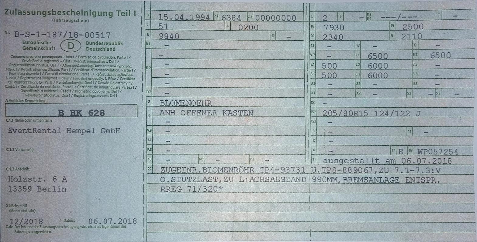 Wie das bei einem gewerblich genutzten Anhänger wie Tonstudio ist ... ahnung