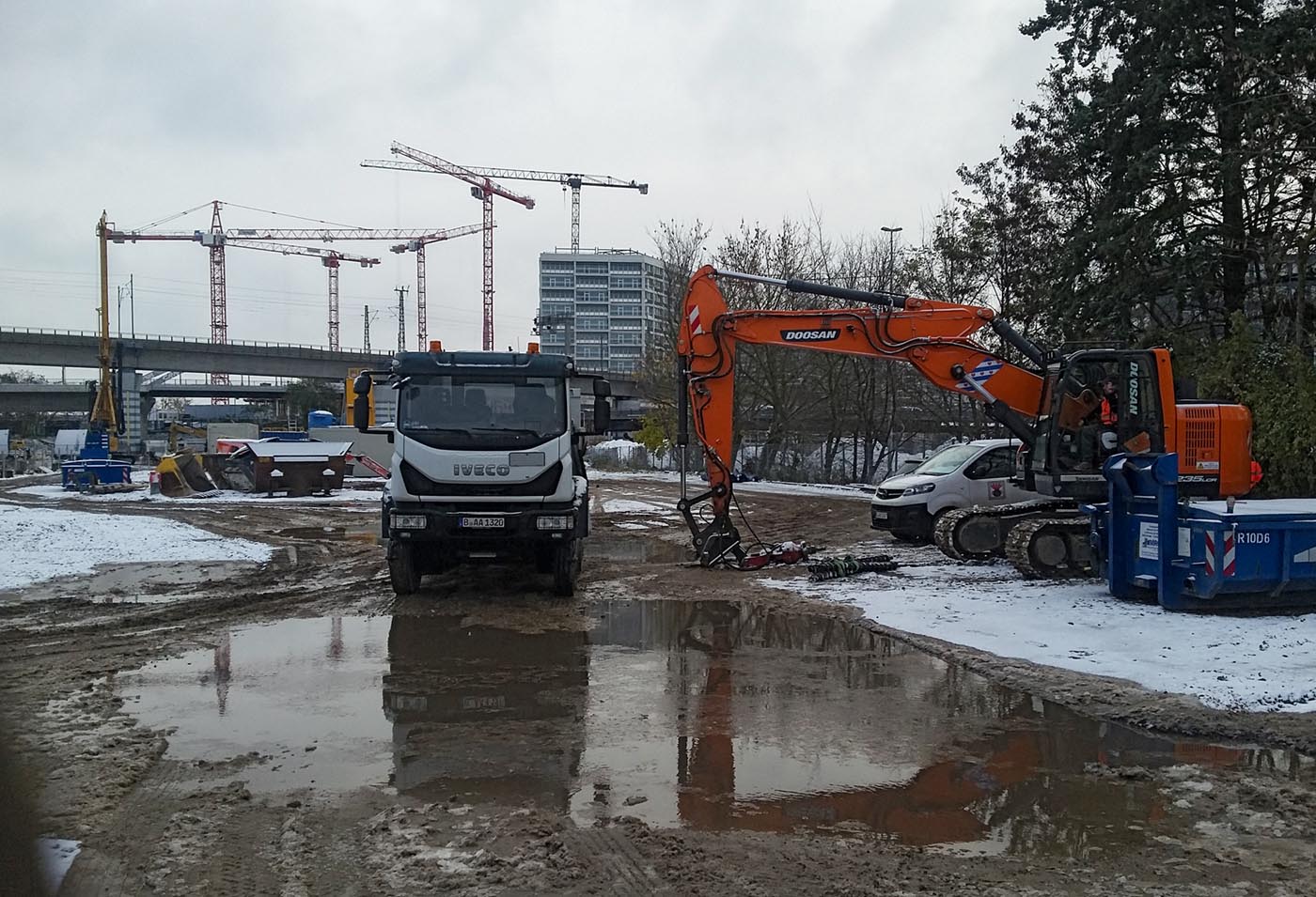 Auch diese wird bebaut, unser Doosan DX 235 hat hier seine neue Aufgabe gefunden, er bekommt von mir Bohrzeug und Löffel geliefert.