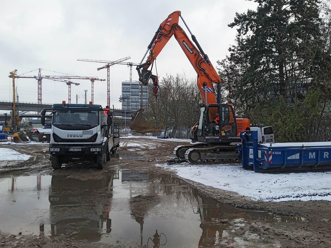 Auch diese wird bebaut, unser Doosan DX 235 hat hier seine neue Aufgabe gefunden, er bekommt von mir Bohrzeug und Löffel geliefert.
