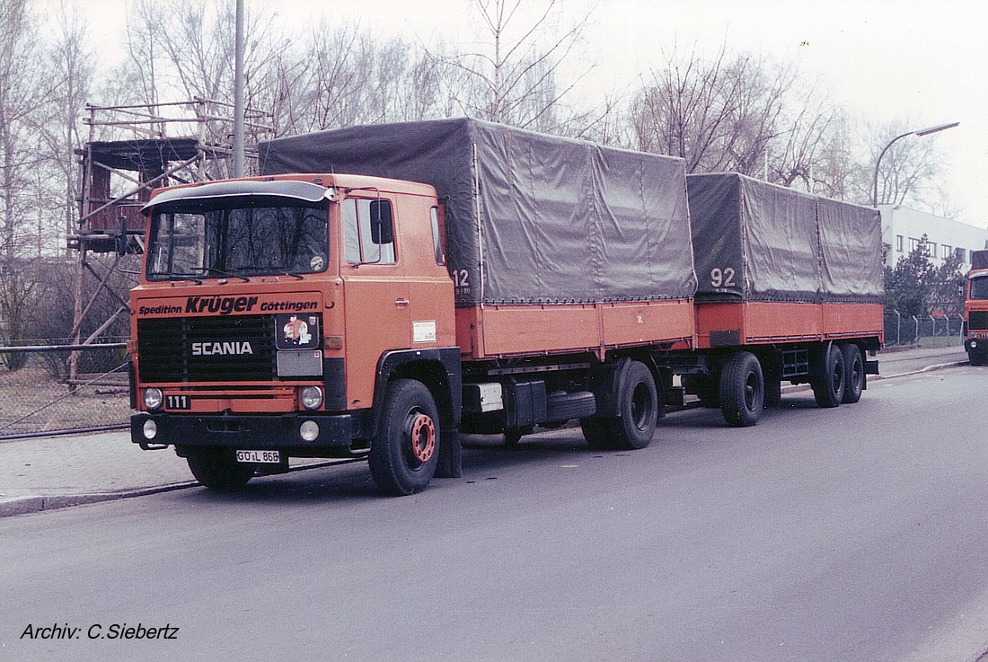 Hier aber ein weiterer Scania LB 111 als klassischer Hängerzug von der Göttinger Spedition Krüger.