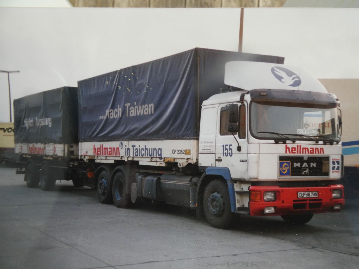 Vor fast auf den Tag genau 30 Jahren wurde der F90 19.372 in München direkt abgeholt. Er lief dann bis 1998 und wurde gegen einen fast identischen F2000 ersetzt. Das erste Bild ist bei der Übergabe in München (der Inhaber der Firma, der Verkäufer und der stolze Fahrer v.l.n.r.)
