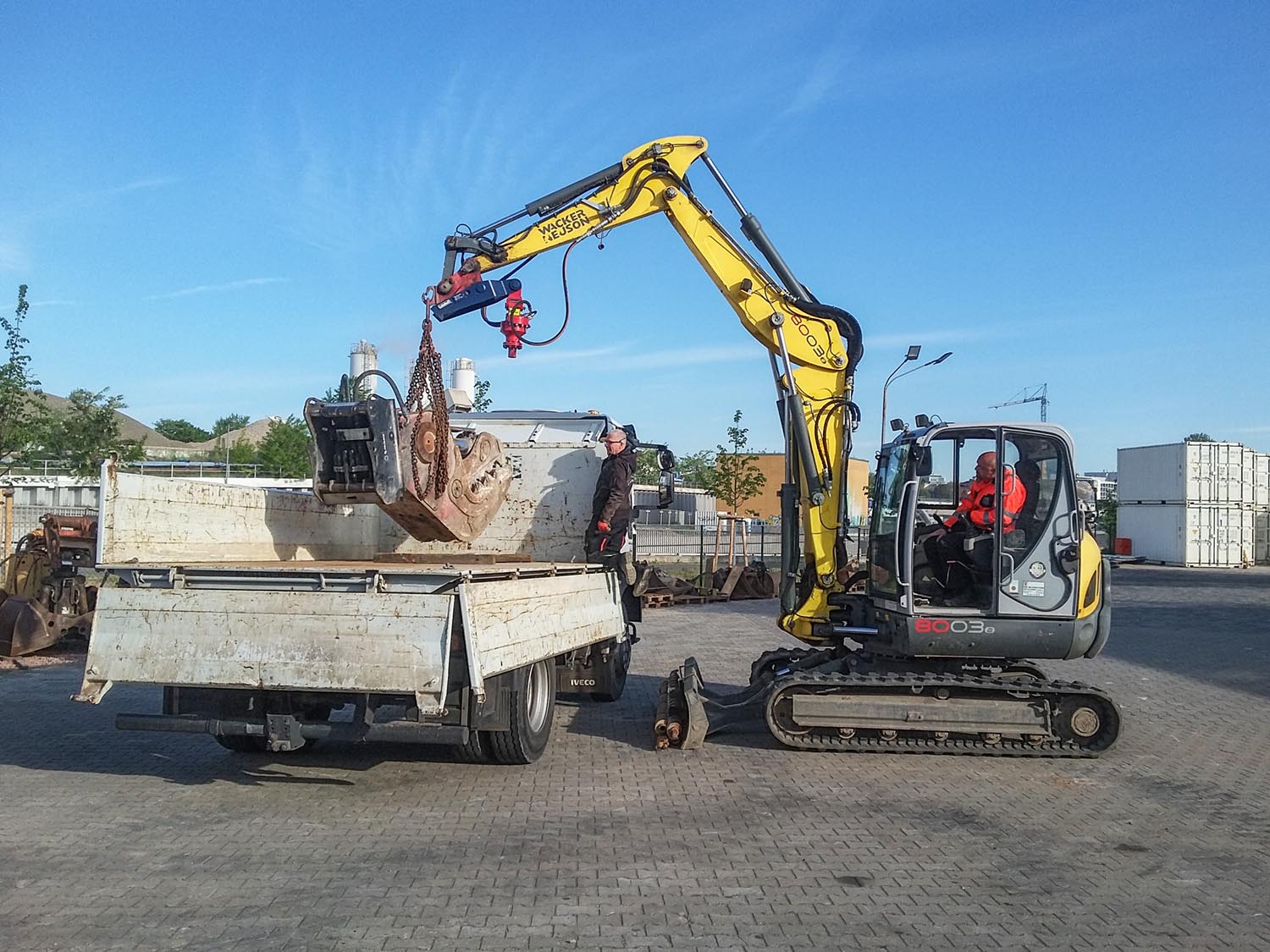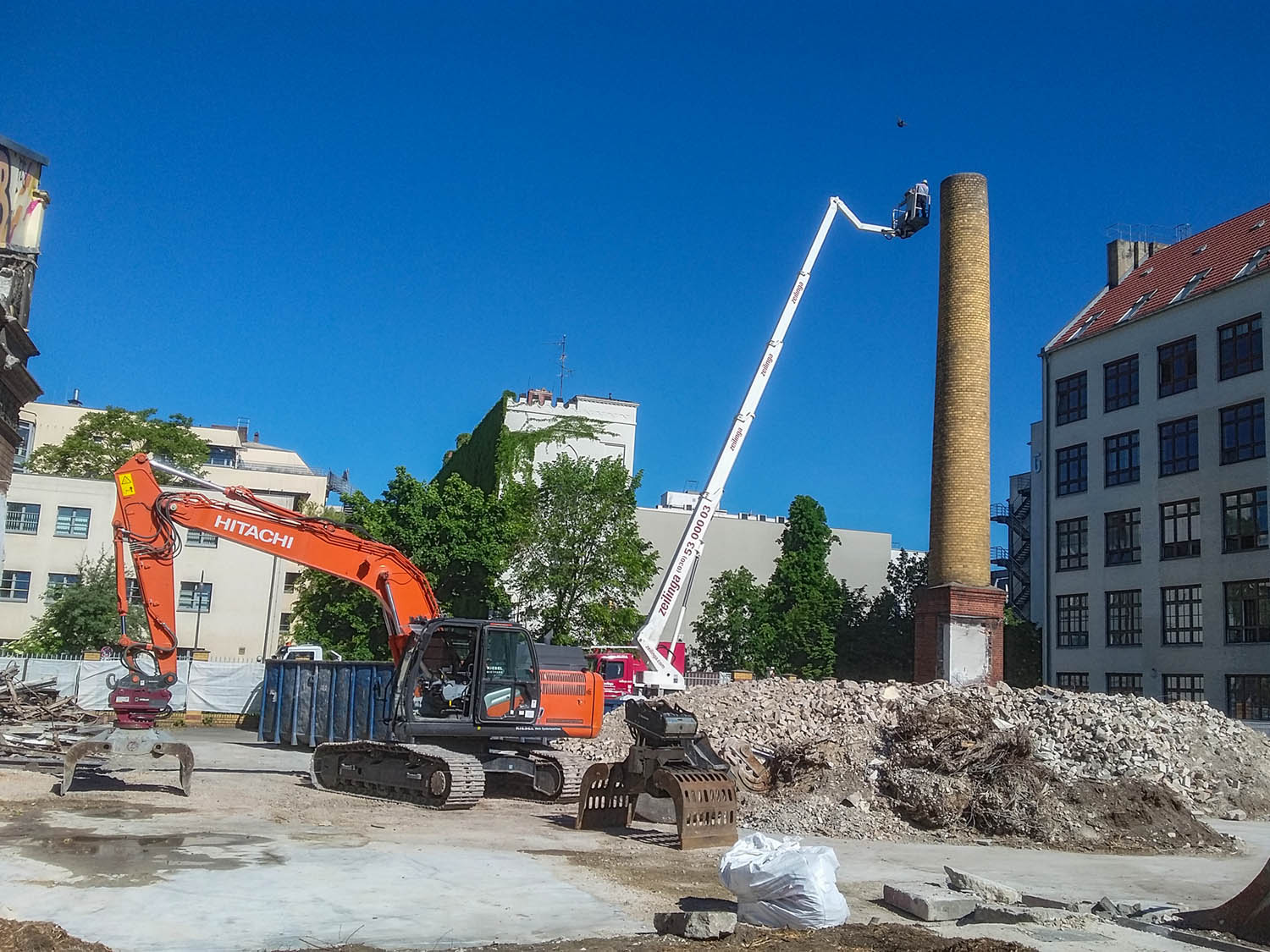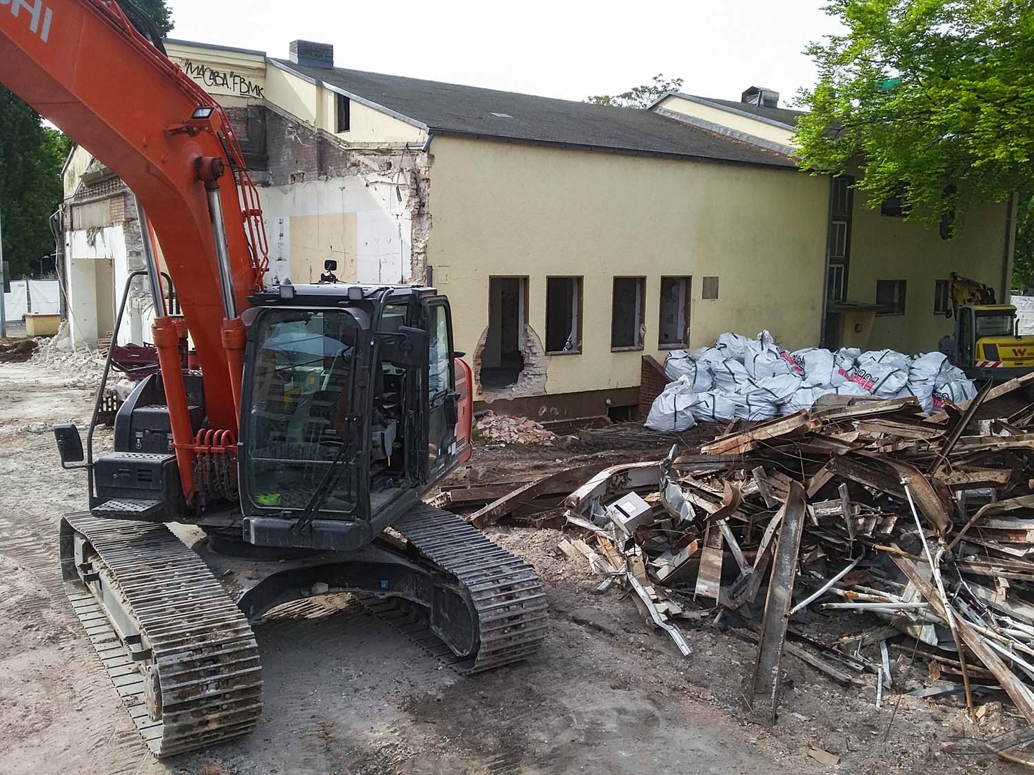 Bei der Vermietung wurde gefragt, ob der Hitachi alles gut überstanden habe, der war eigentlich zu schwach für die schwere Zange, aber der Maschinist wollte die haben und so weit musste er nicht greifen auf der Baustelle.