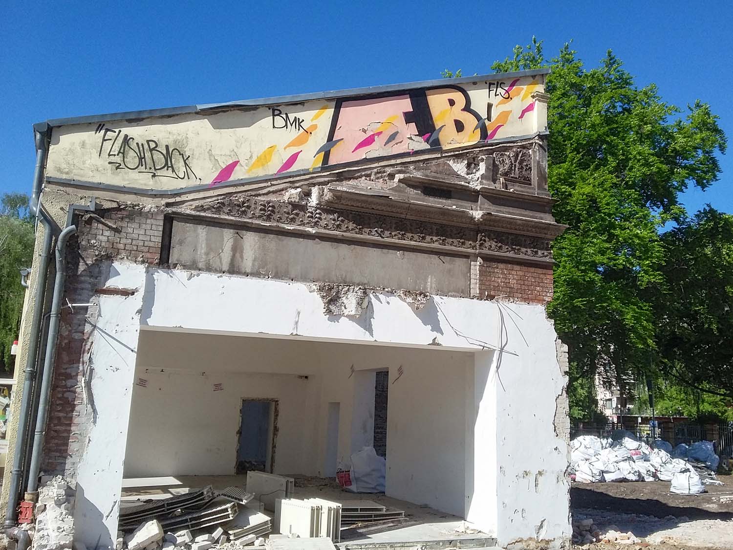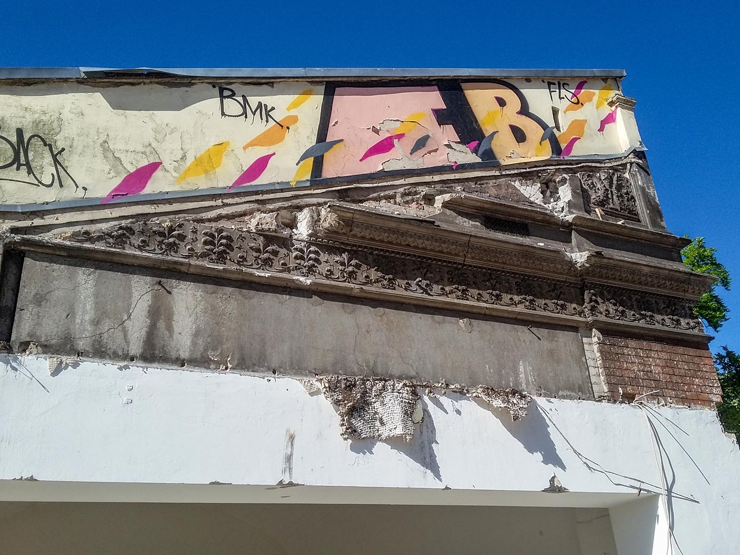 Unter dem Dach des abgerissenen Anbaus kam noch ein kleines Stück des originalen Stucks der alten Stadtvilla vom Lindström zum Vorschein, das ist also noch ein Rest alter Bausubstanz.