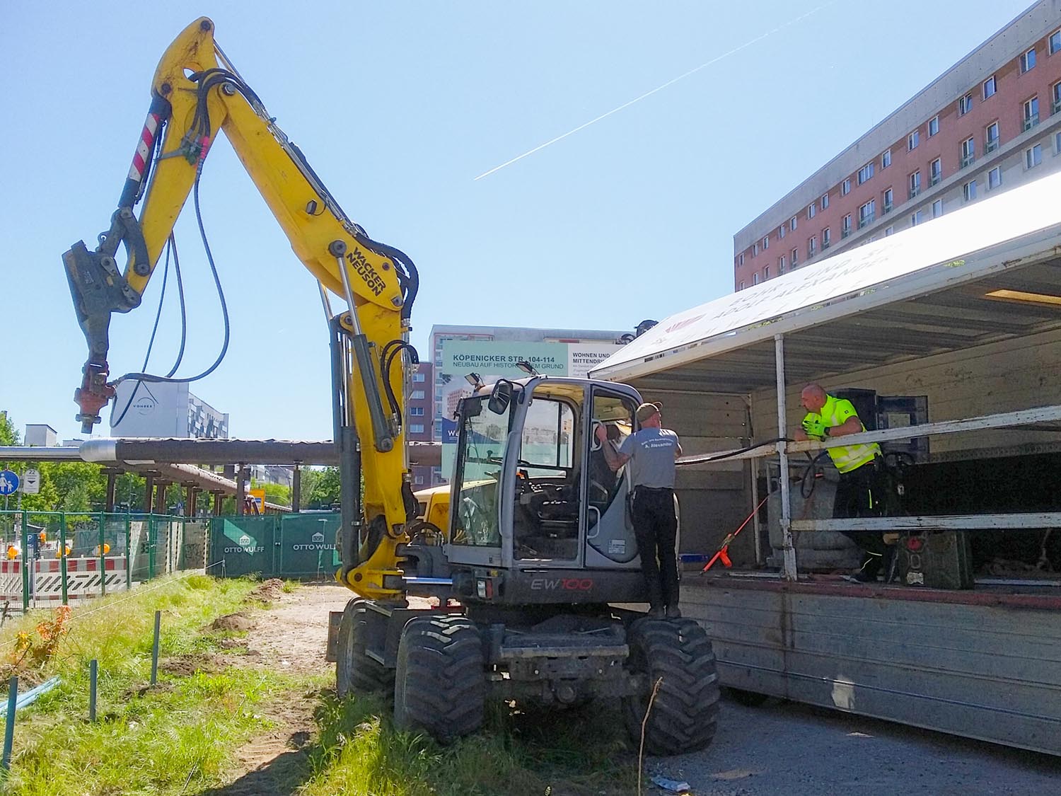 Der EW100 auf der Baustelle vom Otto Lilienthal brauchte neue Bohrstangen und Sprit.
