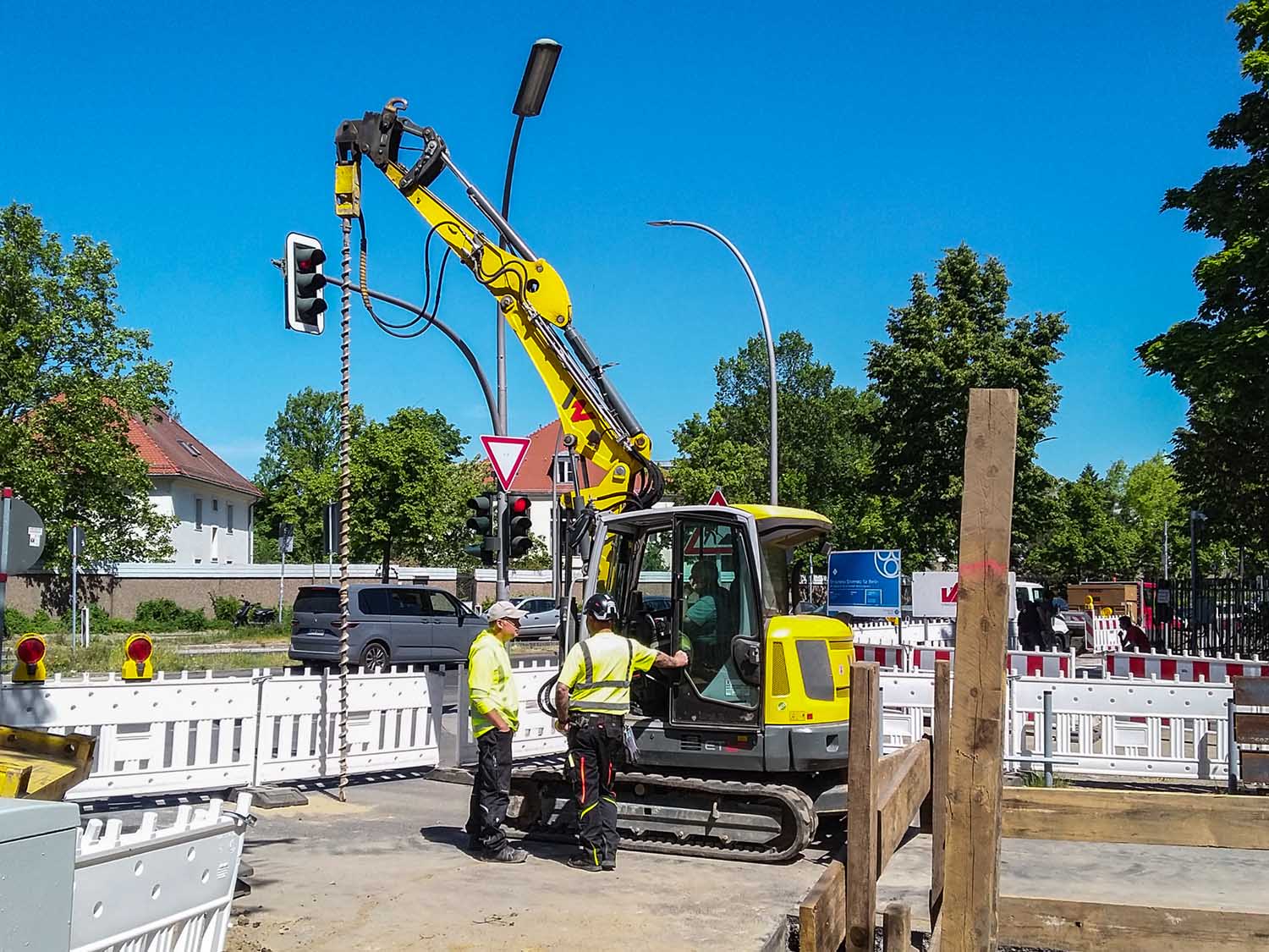 Ich stand da mit dem Baggertaxi auch noch im Weg, aber den Verkehr regelte ein Kollege aus Togo, ehemals deutsche Kolonie, der hatte genauso viel aus Togo zu erzählen wie ich aus Berlin.