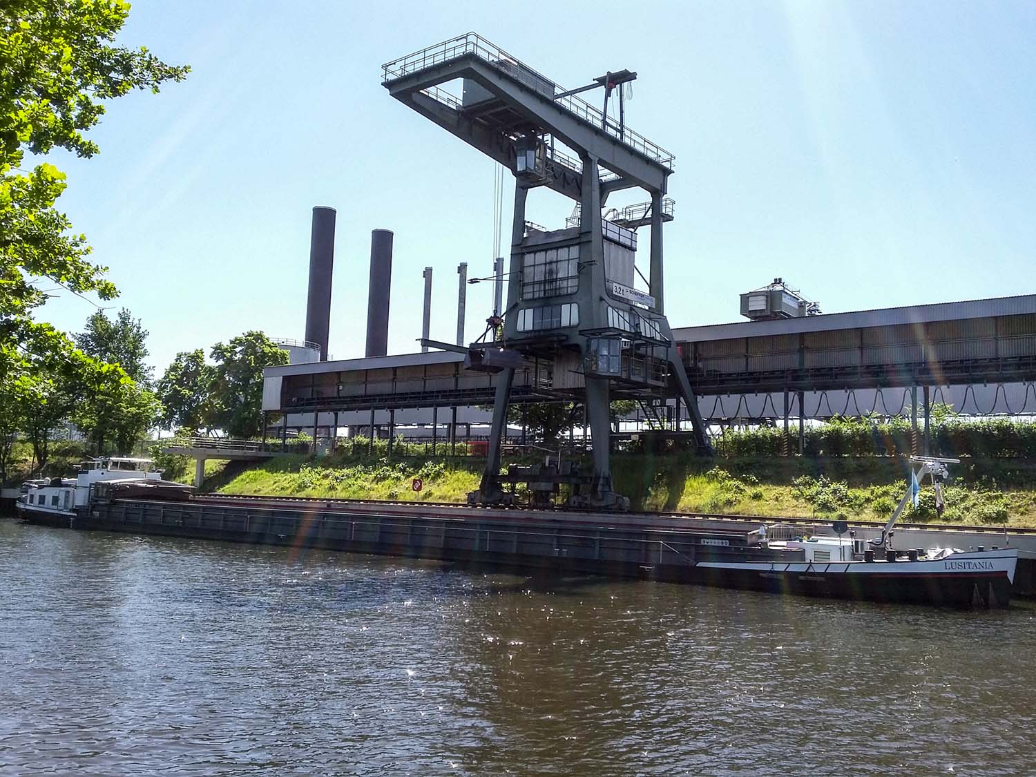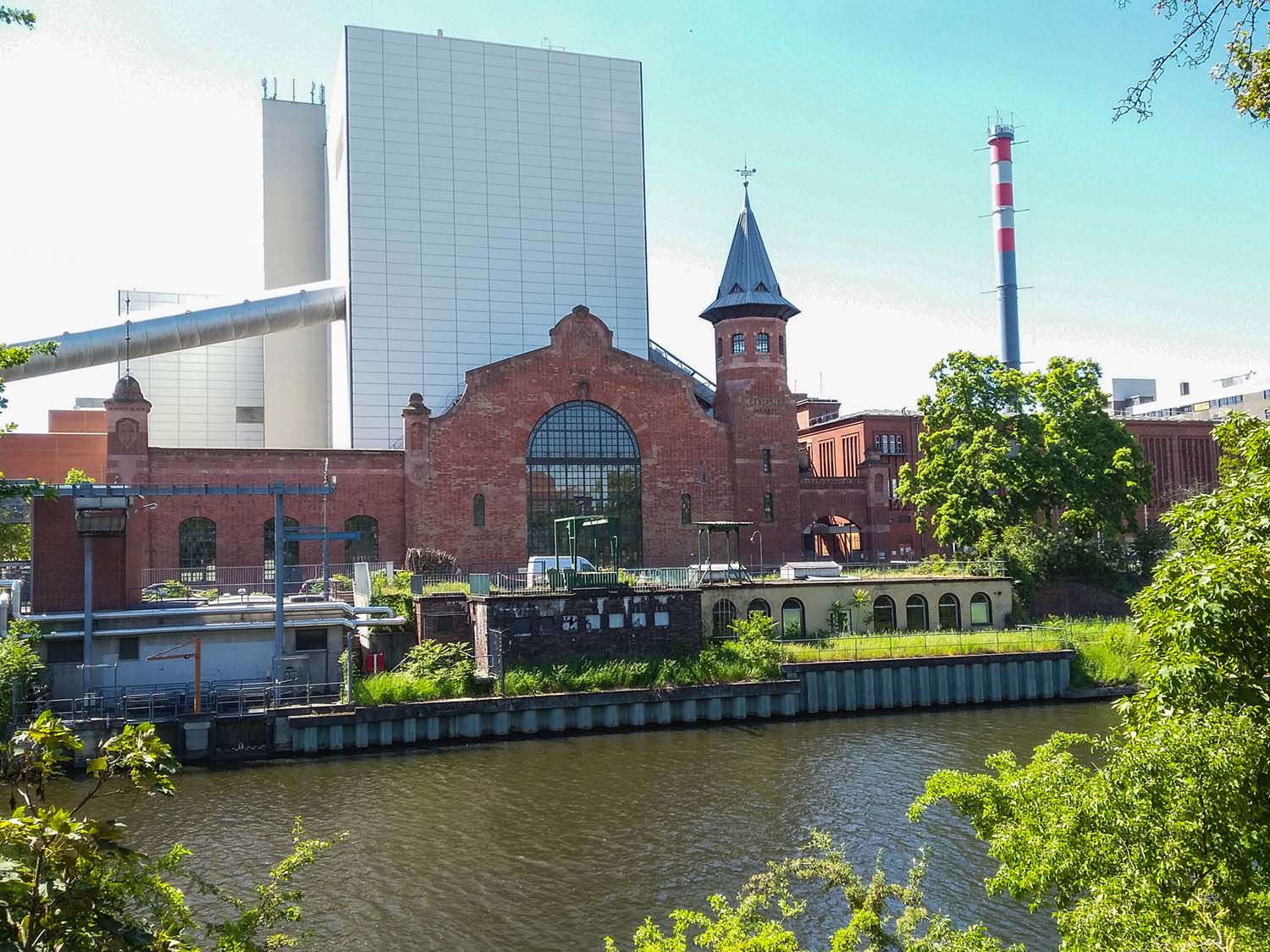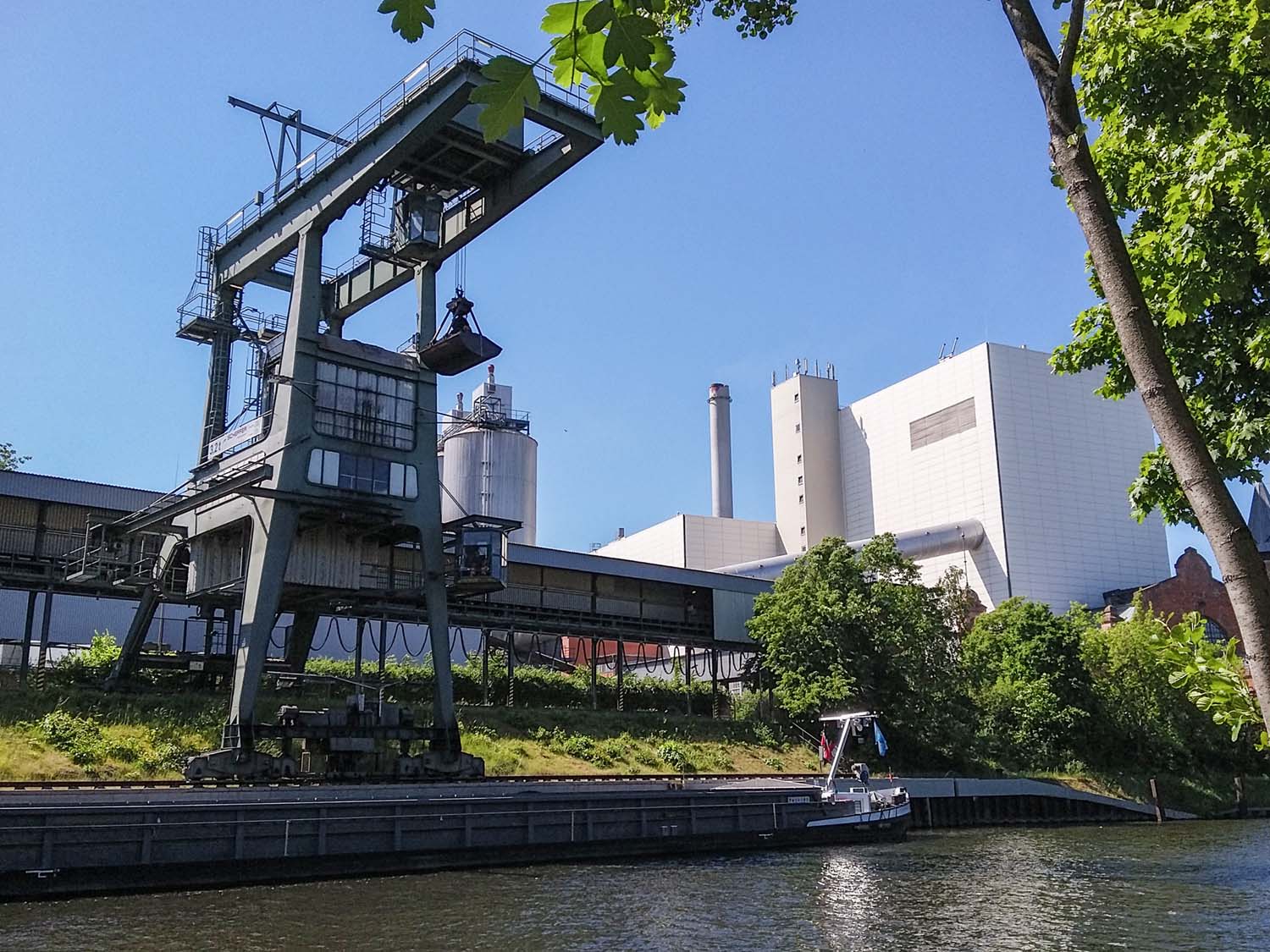 Auf der anderen Seite des Kanals liegt das Kraftwerk Moabit, da wird tatsächlich noch Kohle mit dem Binnenschiff angeliefert – wenn das die Klimakleber wüssten.