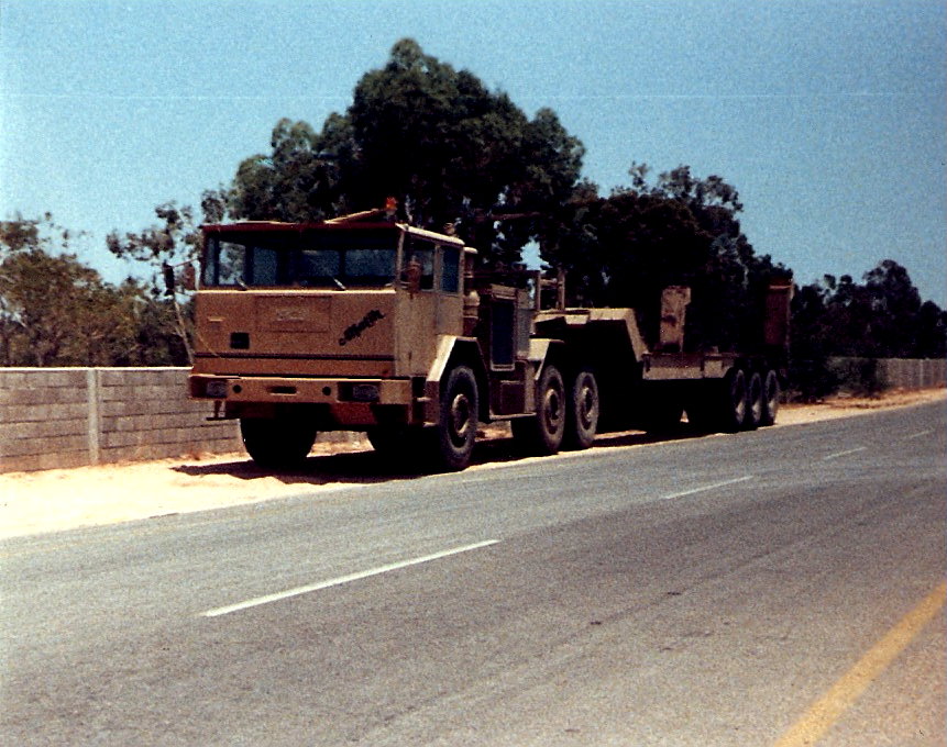 im Jahre 1977 bestellte die libysche Armee insgesamt 250 schwere dreiachsige Sattelzugmaschinen für den Panzertransport bei Kaelble. Zunächst pruduzierte man 151 KDVW 400 S mit DB OM 404 Motor (12 Zyl.) und 400 PS, die zweiachsigen Auflieger dazu kamen von Scheuerle. Da sich die Fahrzeuge aber als etwas zu schwach erwiesen und man in Libyen bis zu zwei Panzer auf einem Tieflader transportieren wollte, erhielten die nächsten 100 Fahrzeuge den OM 404 A Motor mit 525 PS und dreiachsige Tieflader mit 80t. Nutztlast bzw. sechsachsige Tieflader mit 130t. Nutzlast. Die Höchstgeschwindigkeit der 500er Typen betrug satte 84 km/h. Übrigens das 1 Fahrzeug, der Prototyp, ist hier mitgezählt worden.