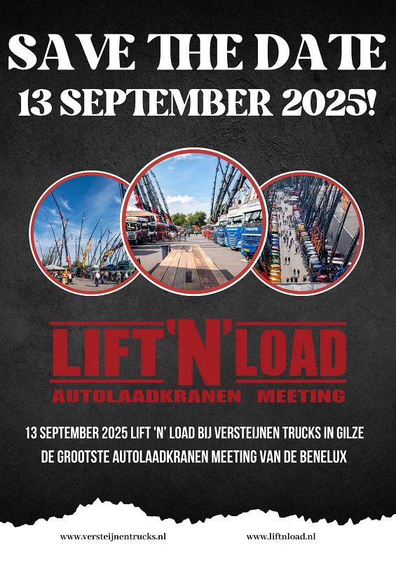 Am Samstag, den 13. September 2025, findet bei Versteijnen Trucks in Gilze die 9. Ausgabe des Lift 'N' Load Treffens für Autokrane statt!
