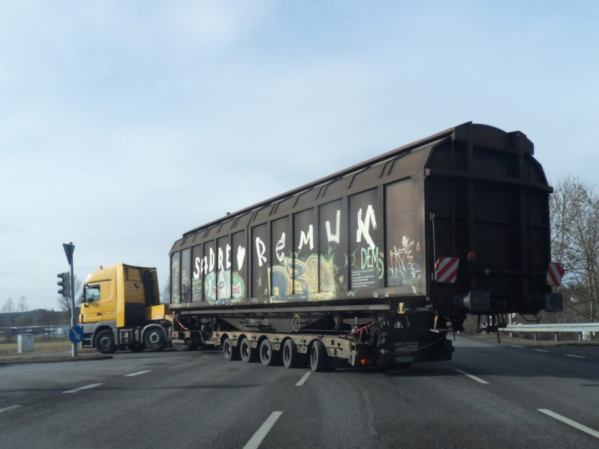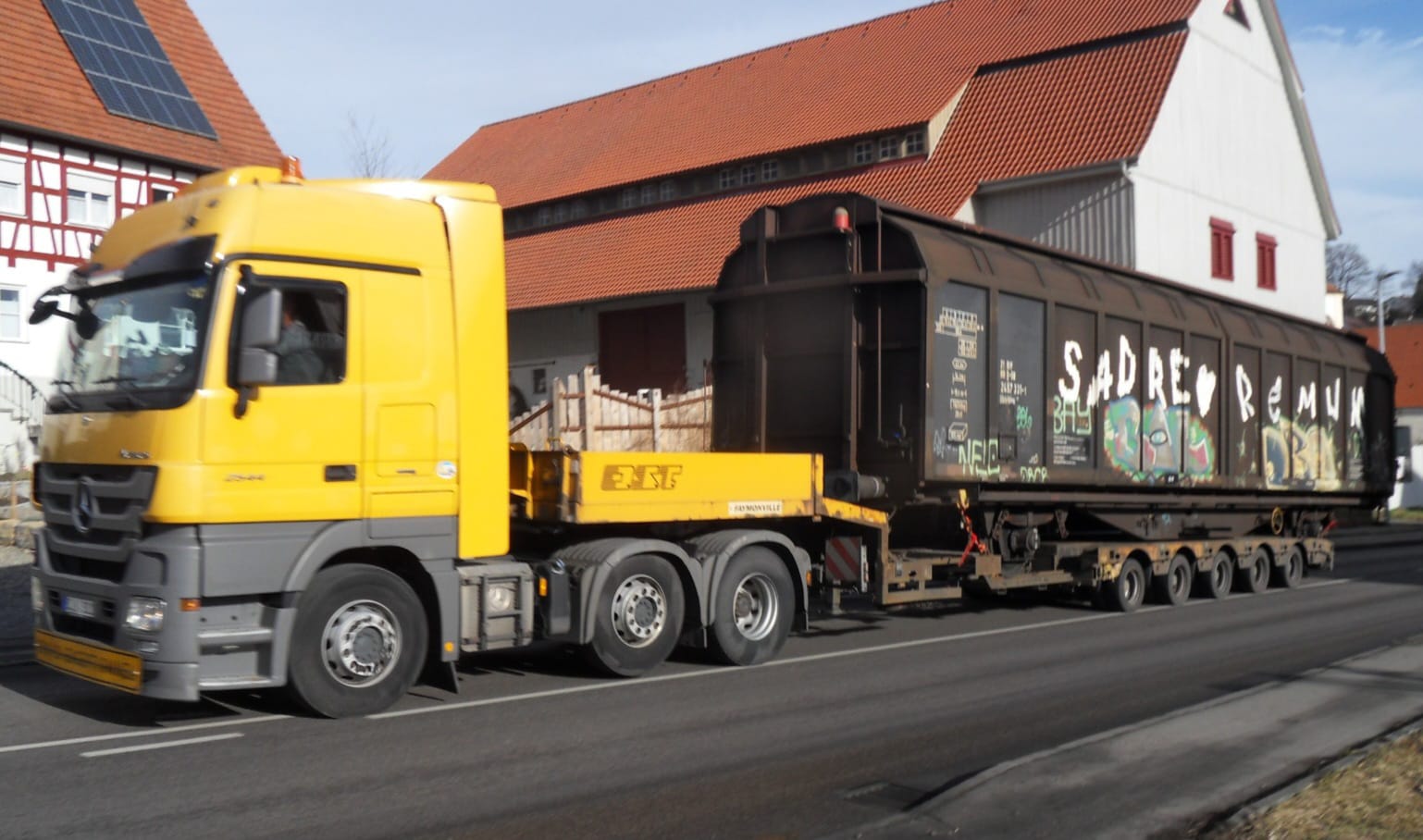 Fried Sped beim Waggontransport vom Liebherr Kühlschrankwerk Ochsenhausen zum Bahnhof Biberach.