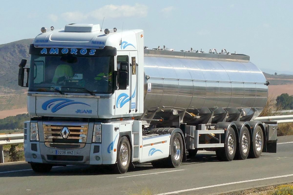 Ich habe auch noch einen Renault Magnum der letzten Baureihe von "Amoros" unterwegs mit Tankauflieger.