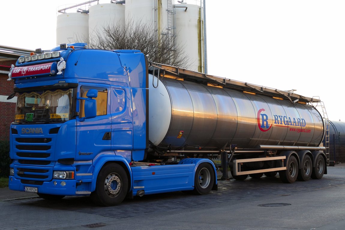 Scania R450 von "ASB Transport" aus Polen, mit Auflieger von "Rygaard" in Cuxhaven
