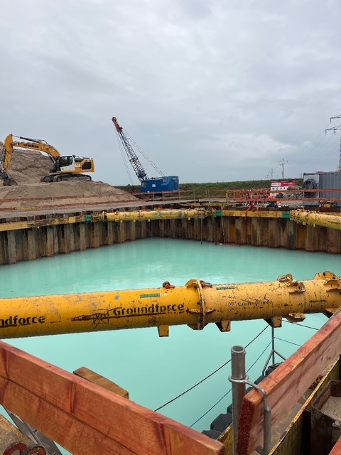 Nachdem der Schacht seine Endtiefe erreicht hatte, wurde die Sohle unter Wasser einbetoniert.